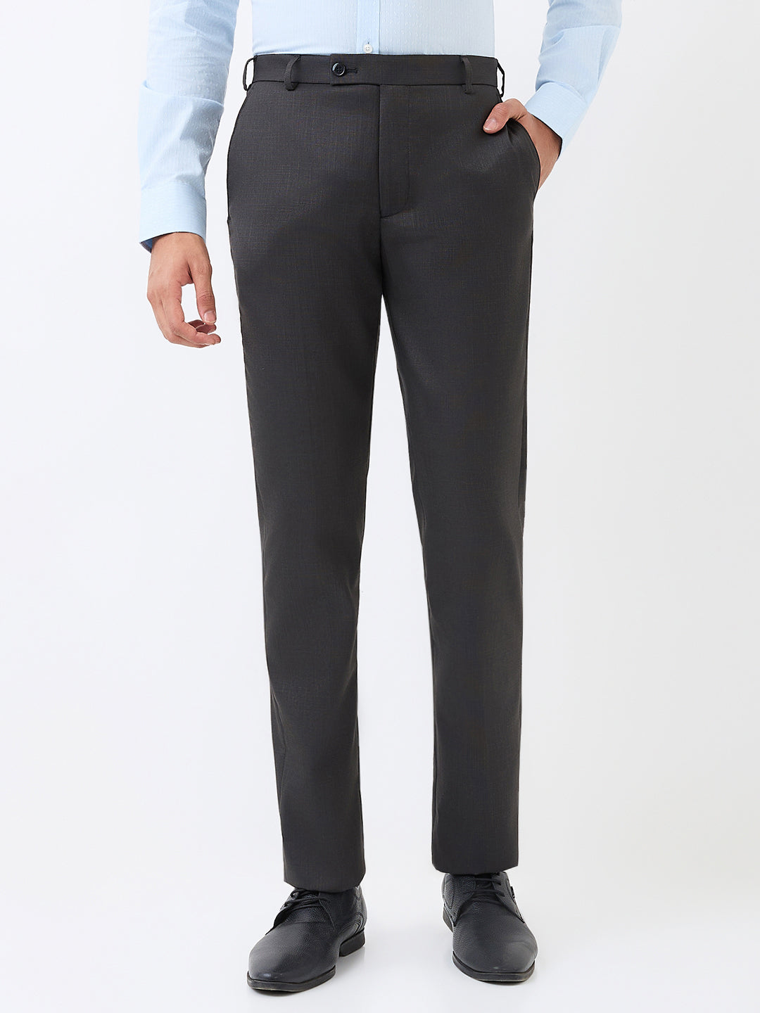 Park Avenue Men Grey Solid Regular Fit Polyester Blend Trouser