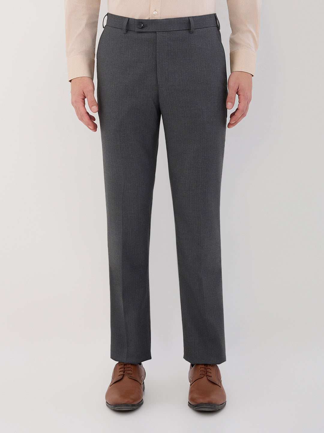 Men Grey Stripe Smart Fit Polyester Blend Trouser