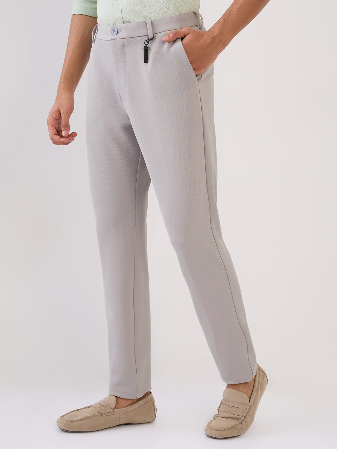 Men Grey Structure Commutech Fit Cotton Blend Trouser