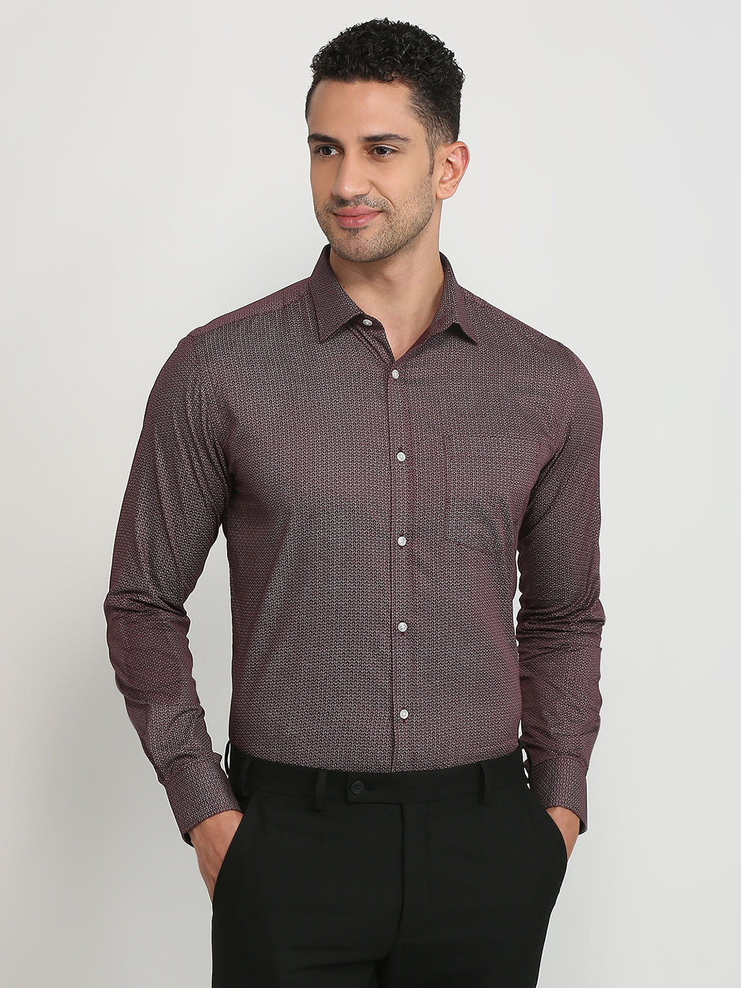 Men Maroon Printed Slim Fit Cotton Formal Shirt