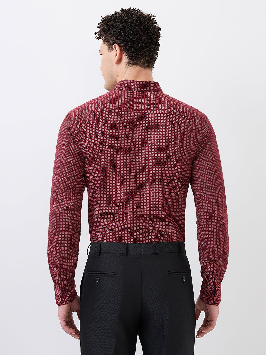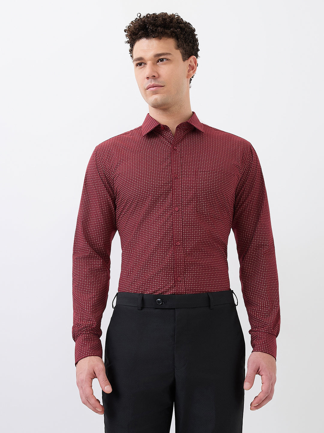 Men Maroon Printed Slim Fit Polyester Blend Formal Shirt