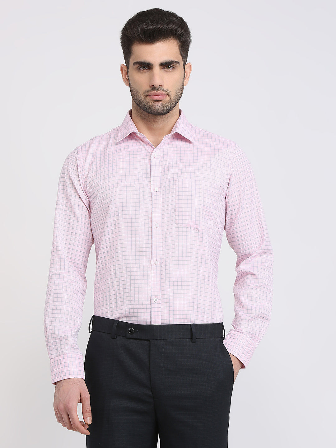 Park Avenue Men Pink Checks Slim Fit Cotton Blend Formal Shirt