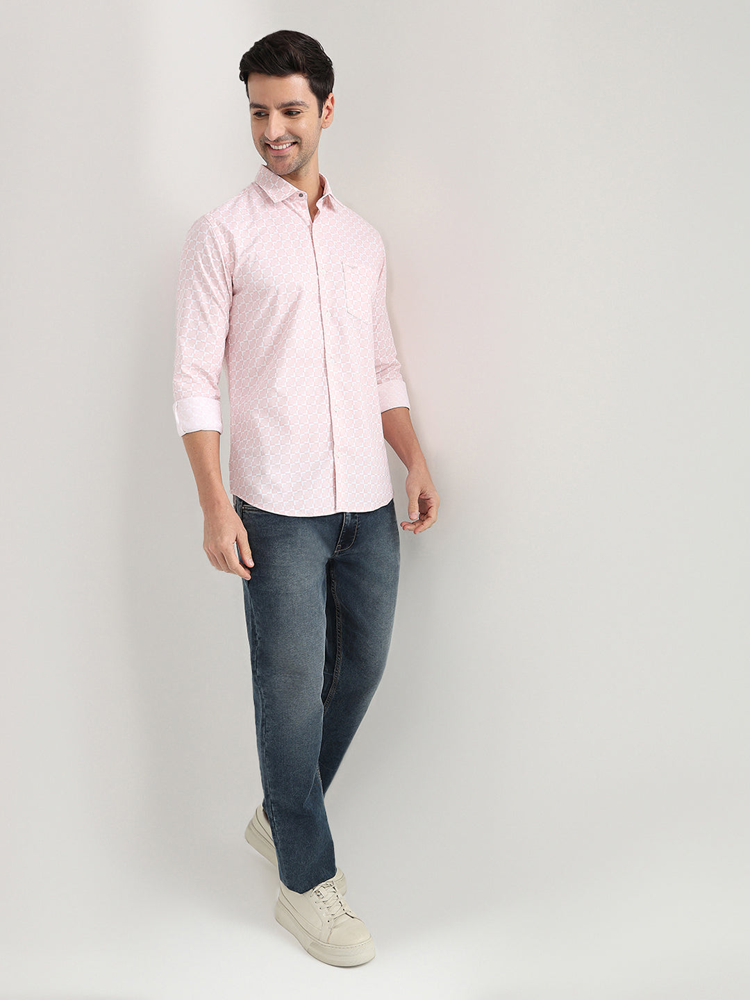 Men Red Printed Slim Fit Cotton Full Sleeve Shirt