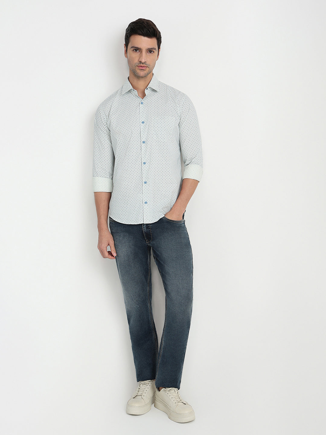 Park Avenue Men Yellow Printed Slim Fit Cotton Full Sleeve Casual Shirt