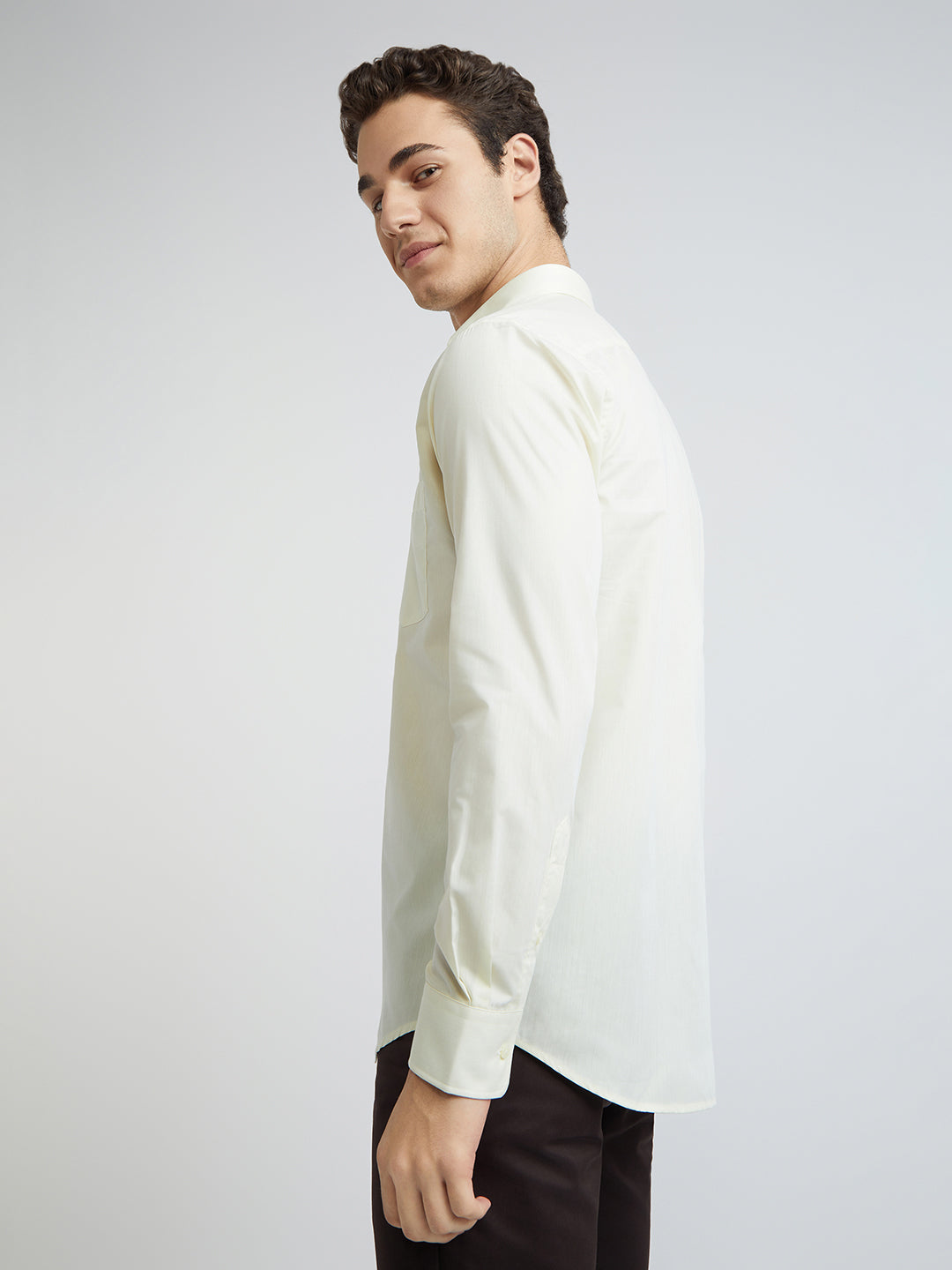 Park Avenue Men Yellow Solid Slim Fit Polyester Blend Shirt