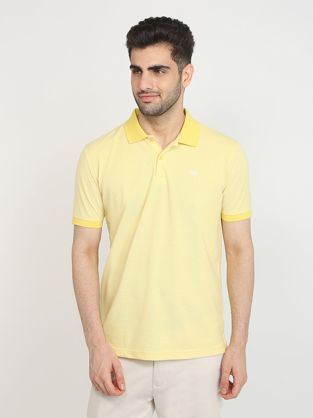 Park Avenue Men Yellow Two Tone Slim Fit Cotton Blend T-Shirt