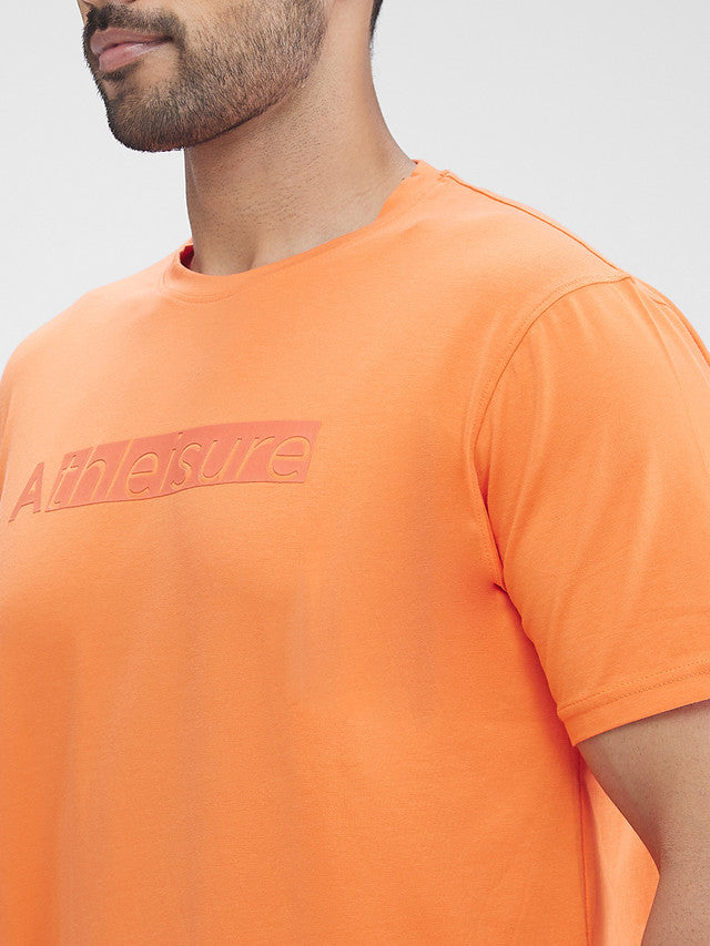 Men Orange Solid Slim Fit Cotton Blend Crew Neck Collar T-Shirt