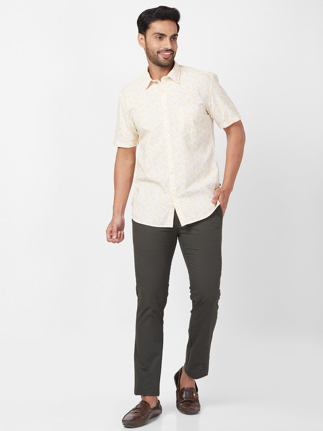 Parx Green Solid Slim Tapered Fit Cotton Blend Trouser