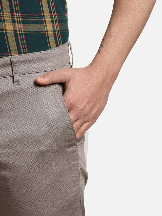 Parx Grey Printed Low Rise Tapered Fit Cotton Blend Trouser