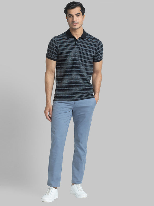 Parx Men Black Yarn Dyed Regular Fit Half Sleeve Polo Neck T-Shirt