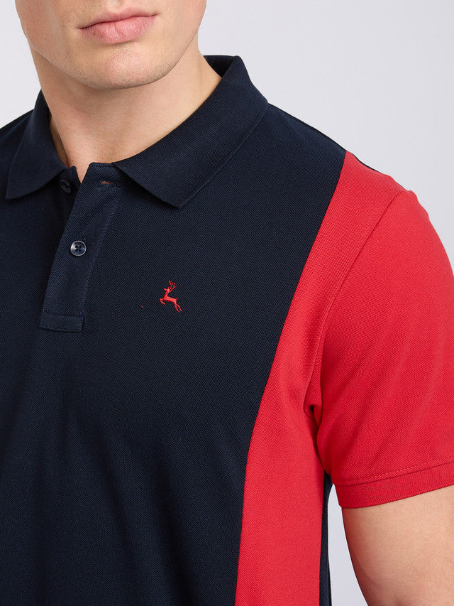 Men Blue Cut & Sew Regular Fit Cotton Blend T-Shirt