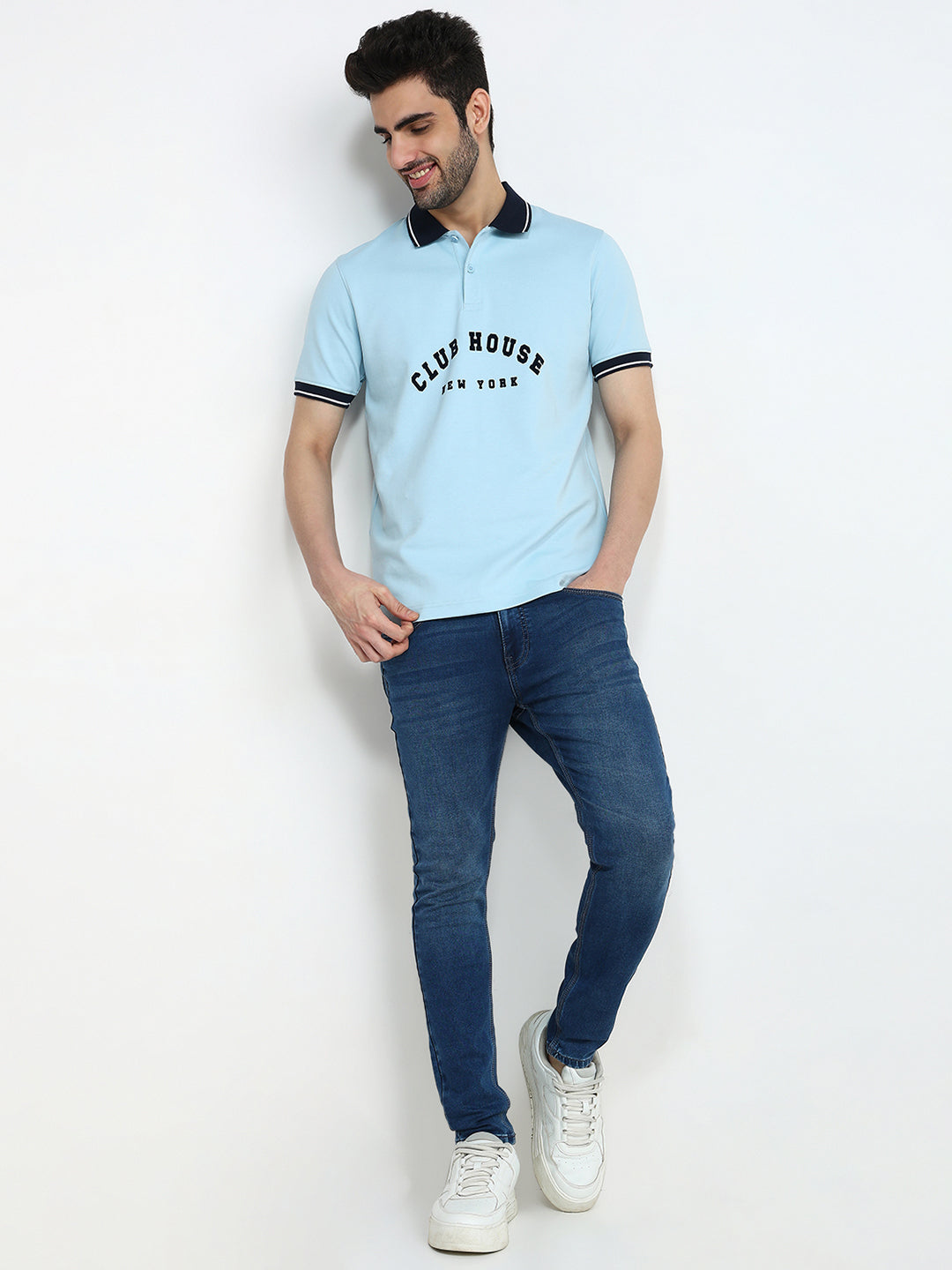Parx Men Blue Knitted Low Rise Skinny Cropped Cotton Blend Jeans