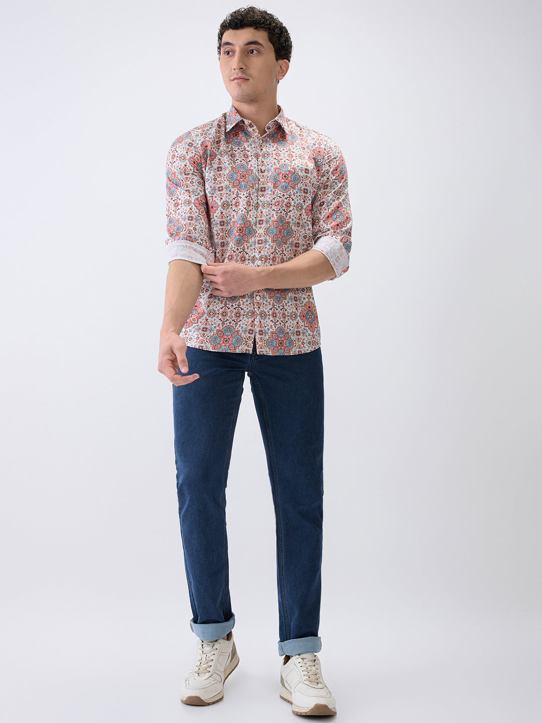 Parx Men Blue Knitted Low Rise Tapered Fit Cotton Blend Jeans