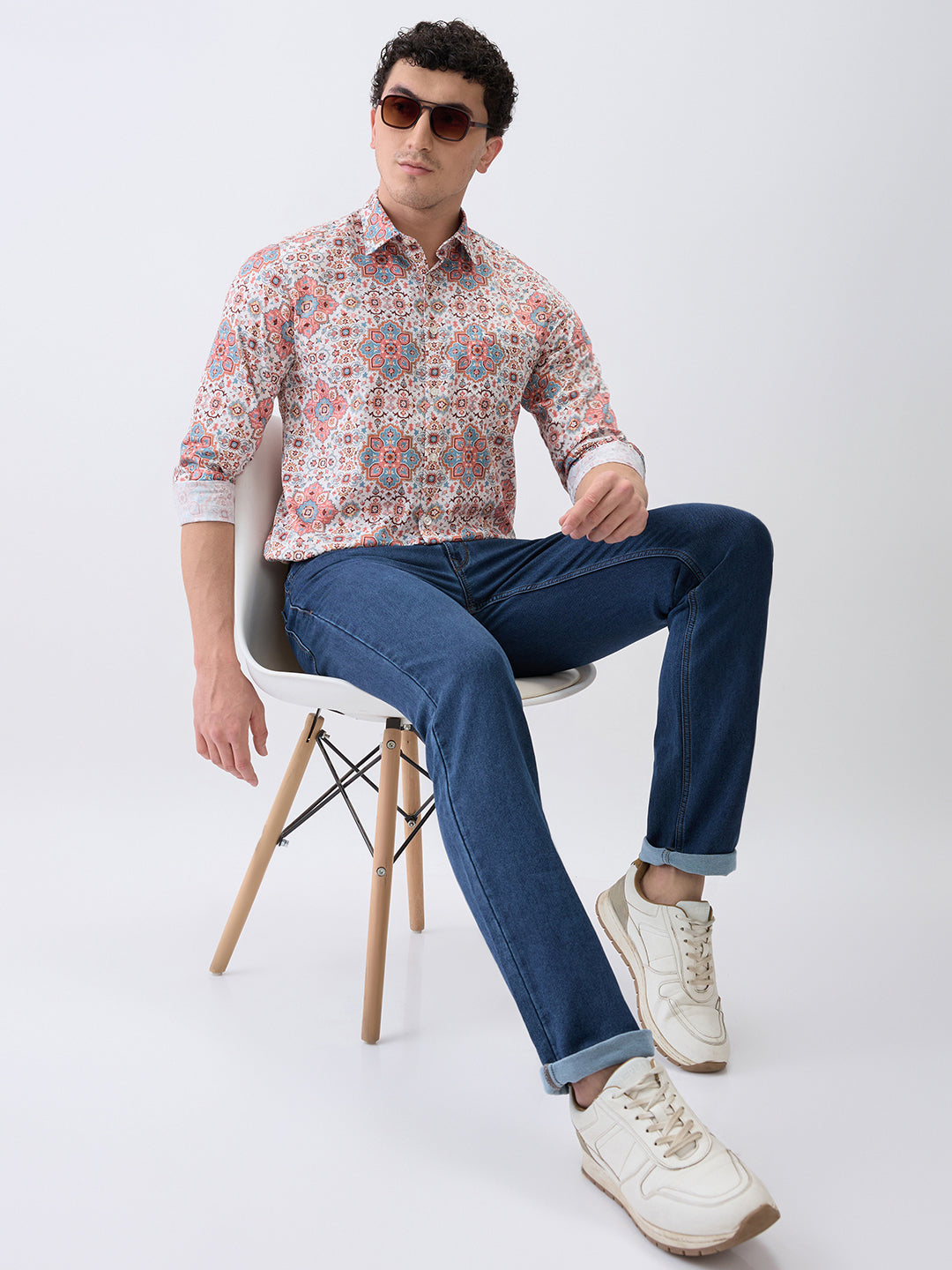 Men Blue Knitted Low Rise Tapered Fit Cotton Blend Jeans