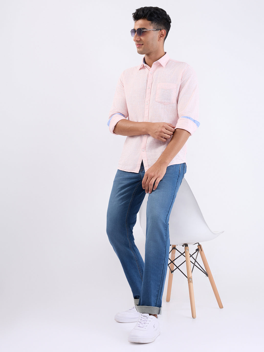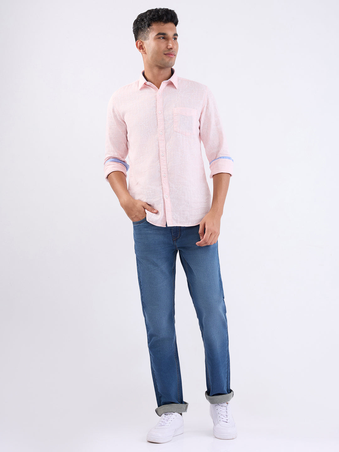 Parx Men Blue Knitted Mid Rise Straight Cotton Blend Jeans