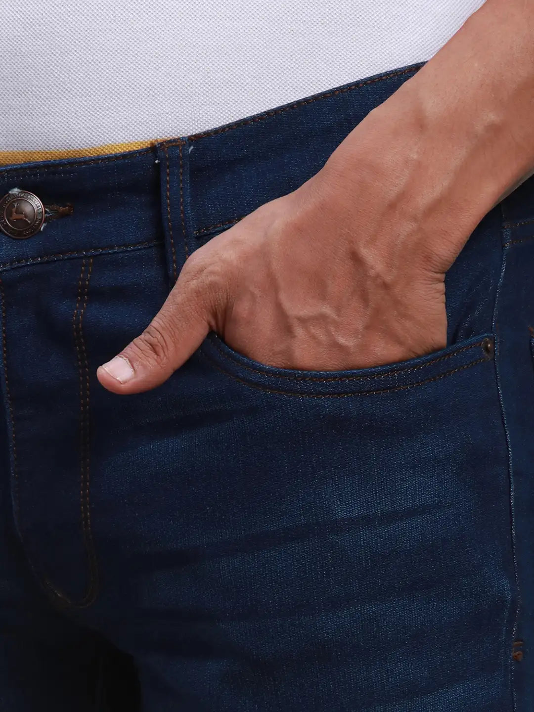 Parx Men Blue Plain Slim Tapered Fit Cotton Blend Jeans