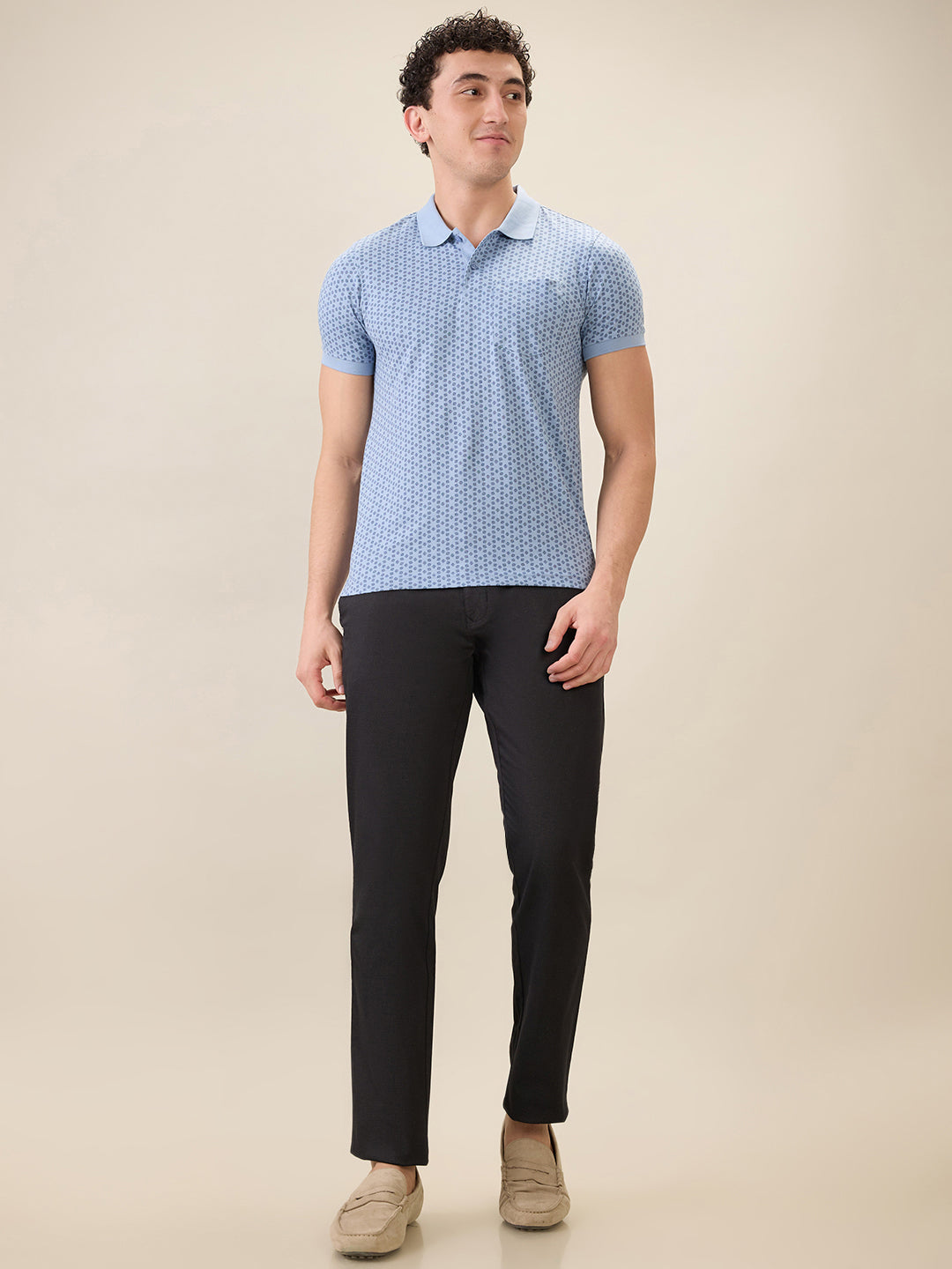 Parx Men Blue Printed Regular Fit Cotton Blend Half Sleeve T-Shirt