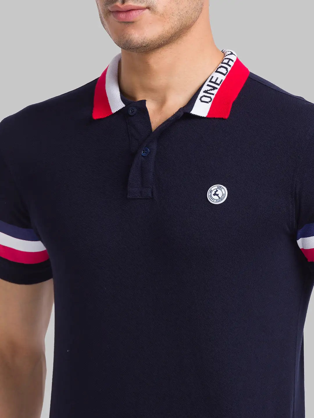 Parx Men Blue Solid Regular Fit Cotton Intarsia Neck T-Shirt
