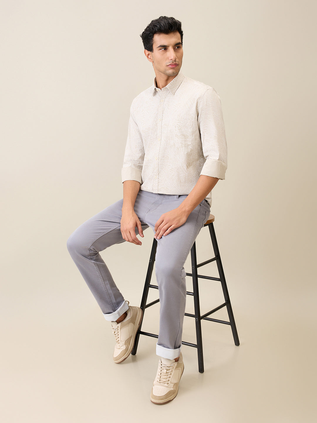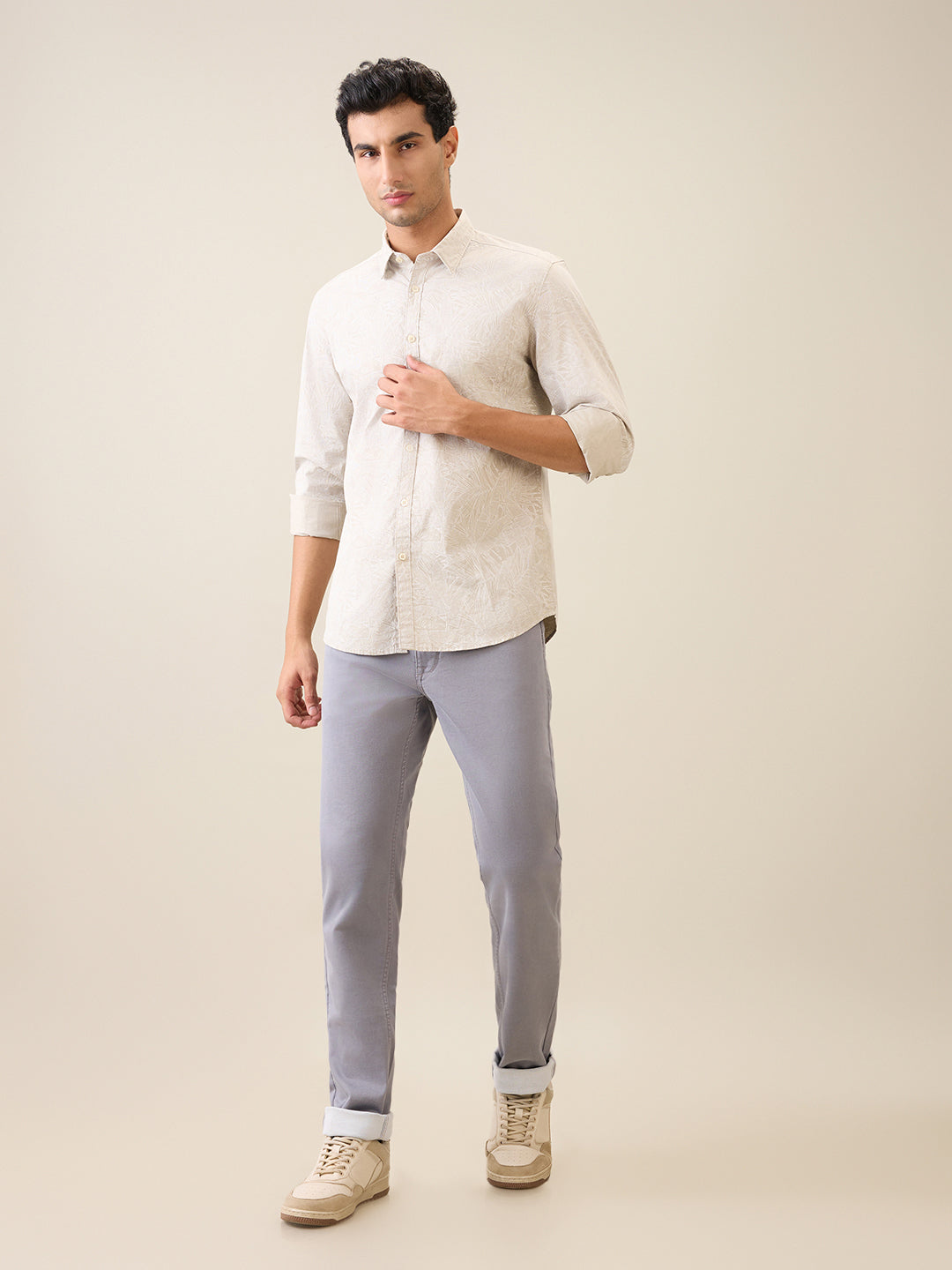 Men Brown Printed Slim Fit Cotton Casual Shirt