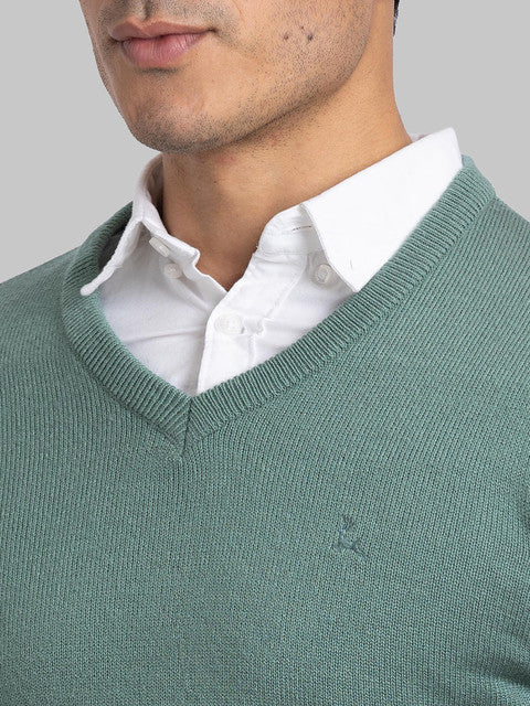 Parx Men Green Solid Acrylic Sweater
