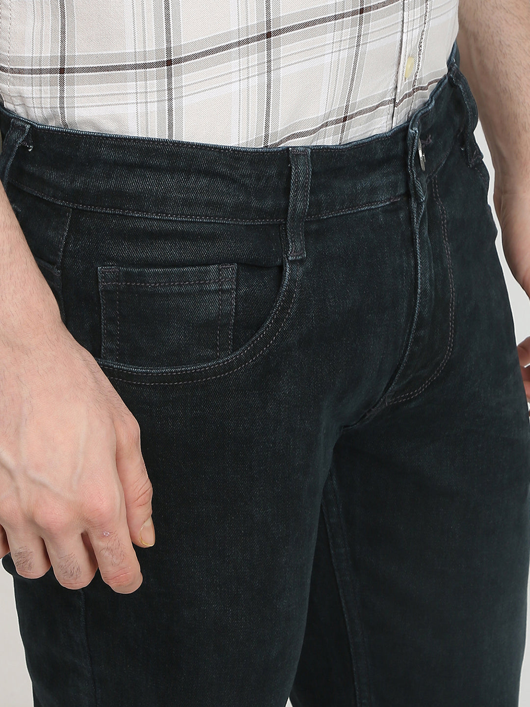 Parx Men Green Twill Low Rise Tapered Fit Cotton Blend Jeans