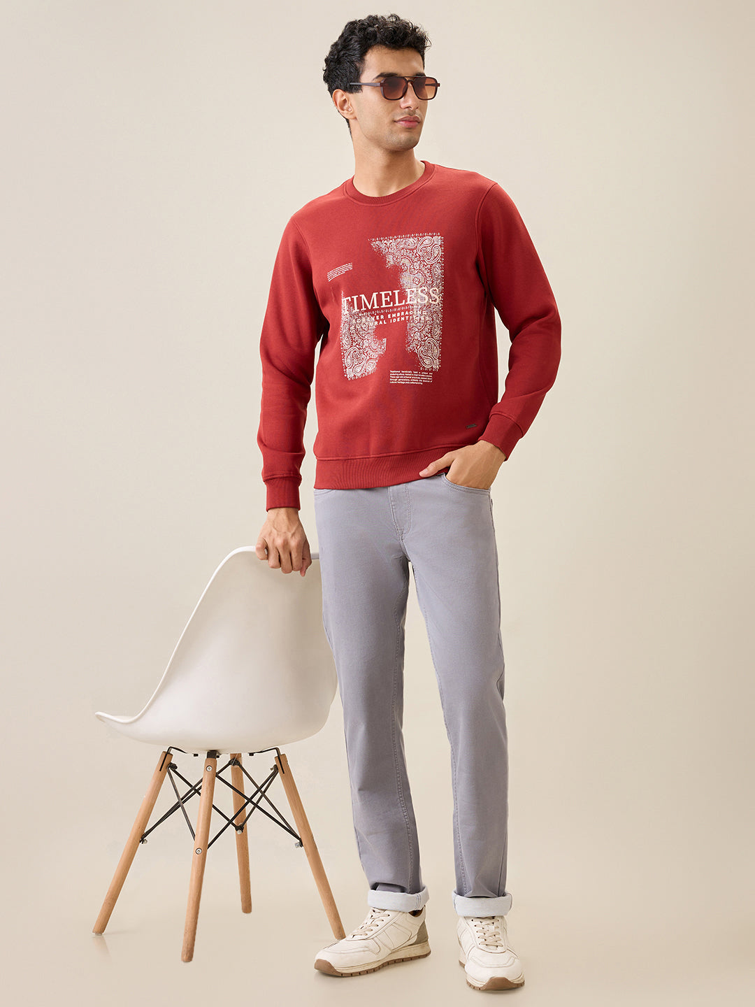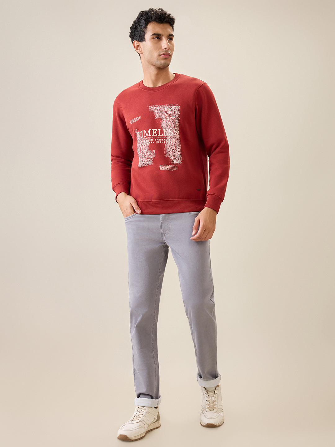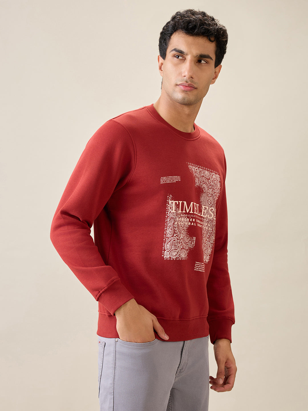 Men Orange Graphic Regular Fit Cotton Blend Full Sleeve Round Neck Collar Sweatshirt