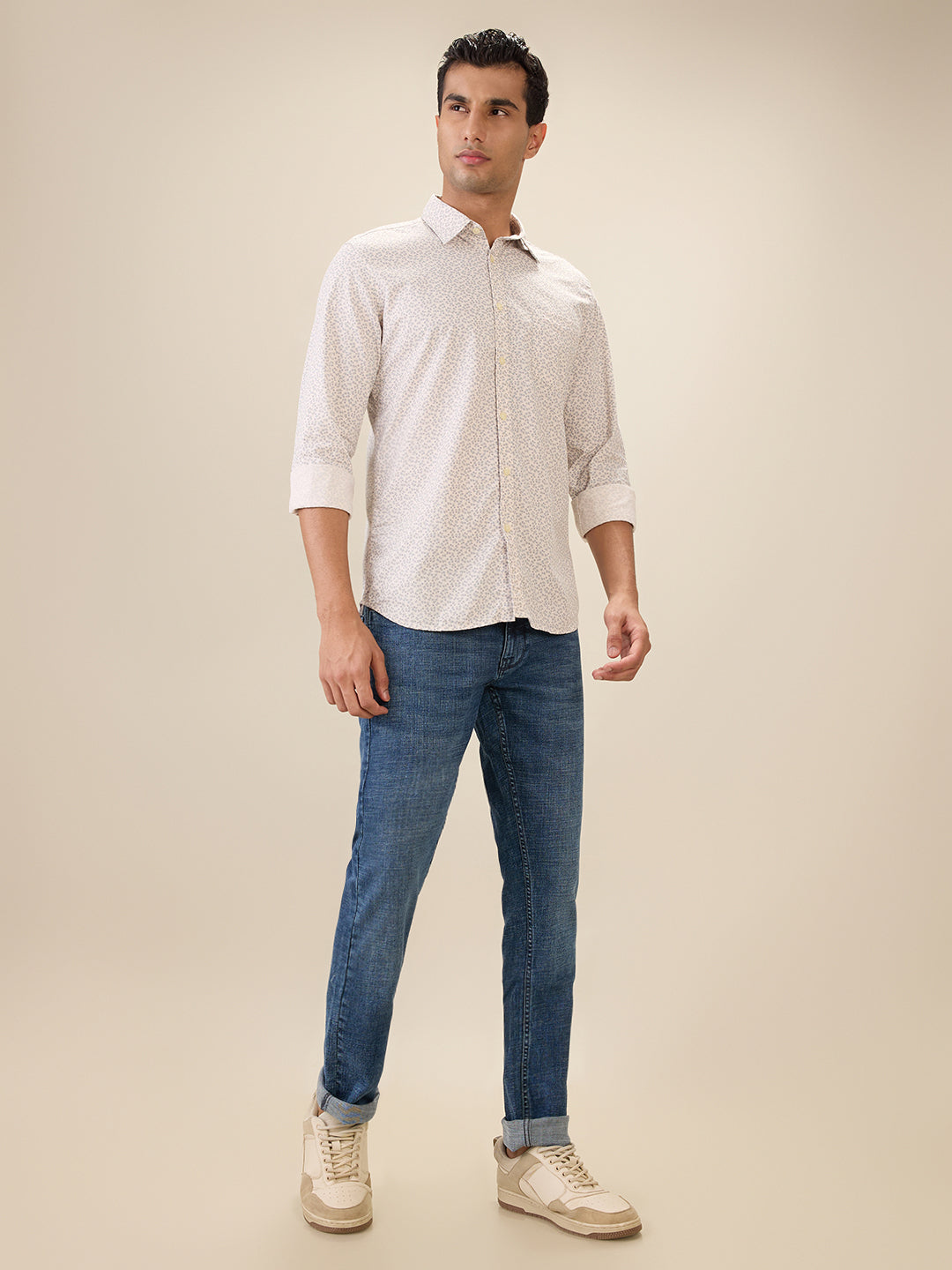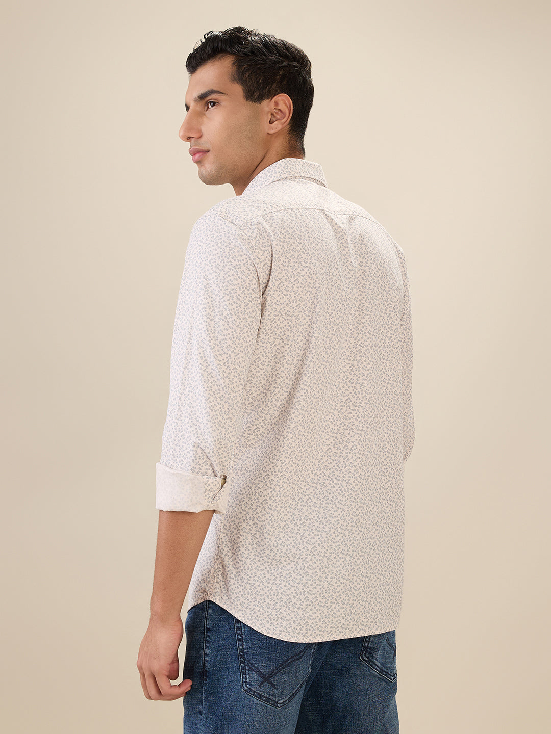 Parx Men Orange Printed Slim Fit Cotton Full Sleeve Cut Away Collar Casual Shirt