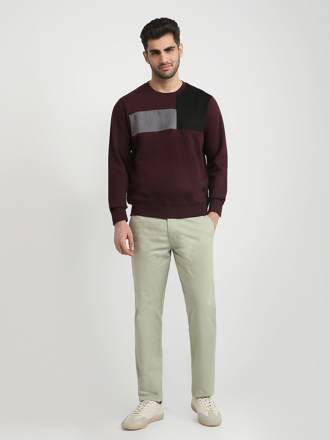 Men Purple Cut & Sew Regular Fit Cotton Blend Full Sleeve Round Neck Collar Sweatshirt