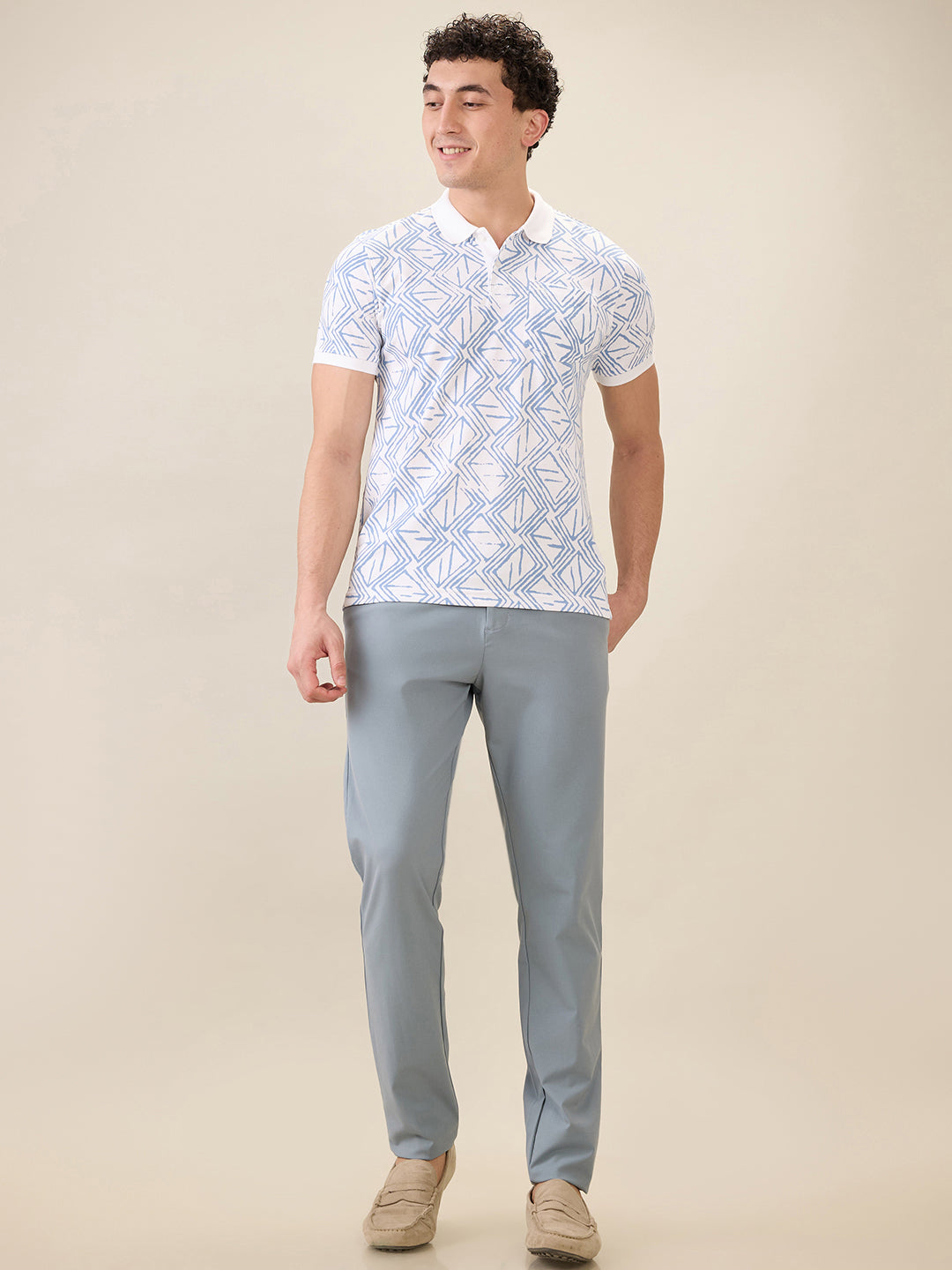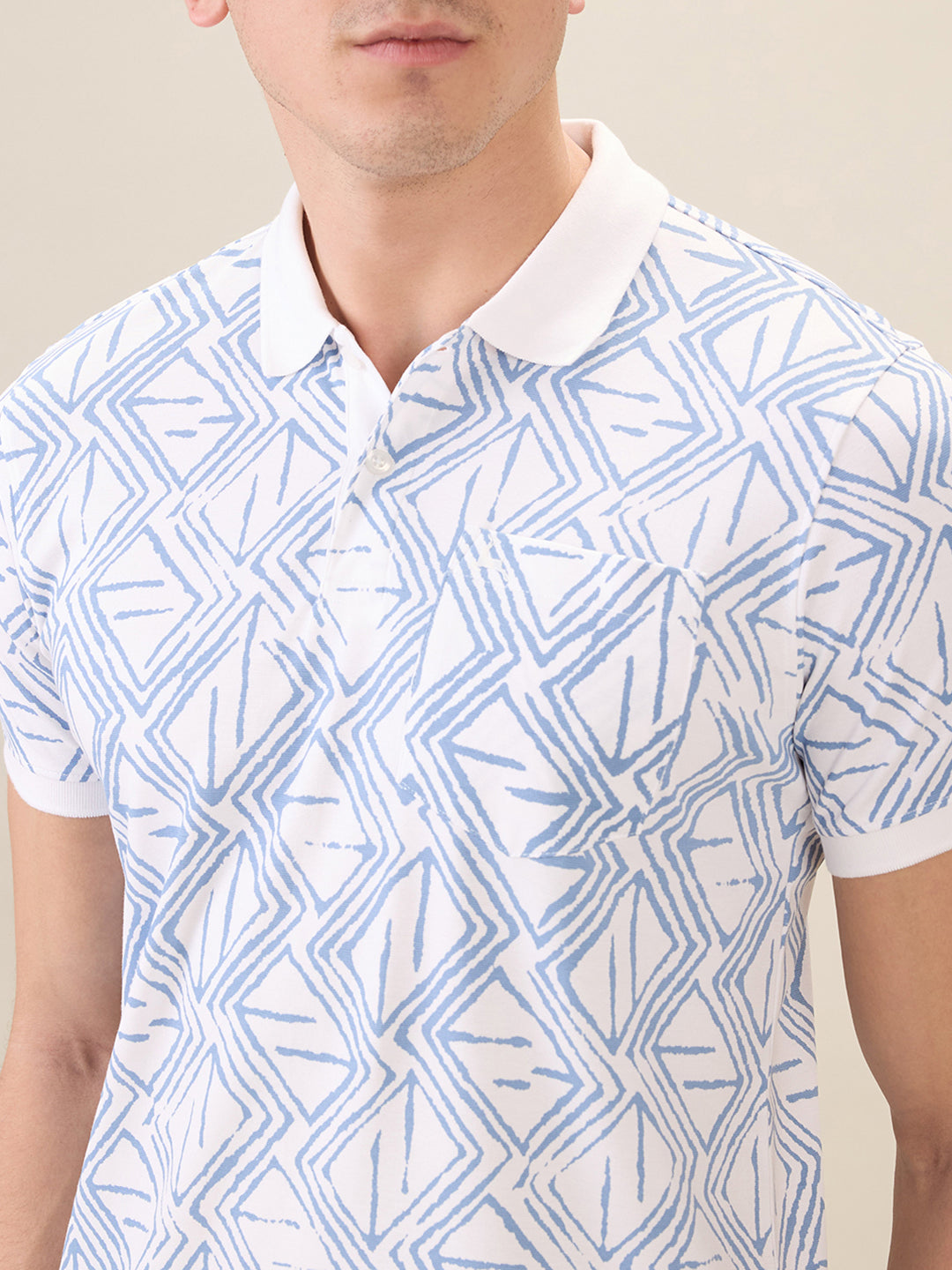 Men White Printed Regular Fit Cotton Blend Half Sleeve T-Shirt