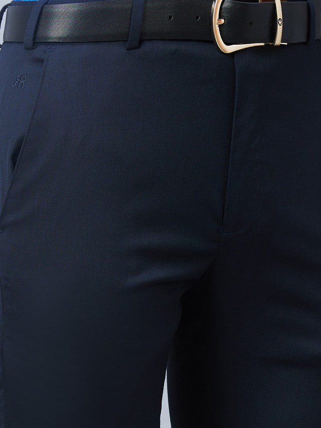 Raymond Blue Solid Slim Fit Polyester Blend Trouser
