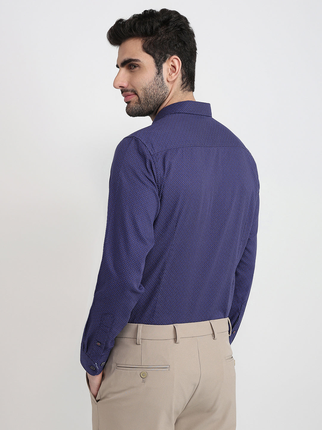Men Blue Printed Regular Fit Cotton Full Sleeve Regular Collar Shirt