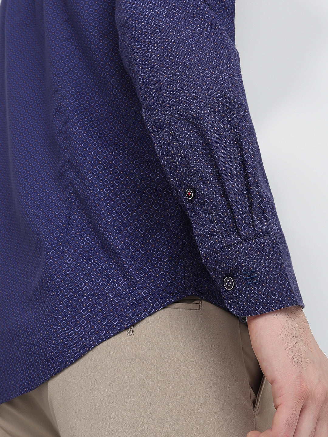 Raymond Men Blue Printed Regular Fit Cotton Full Sleeve Regular Collar Casual Shirt