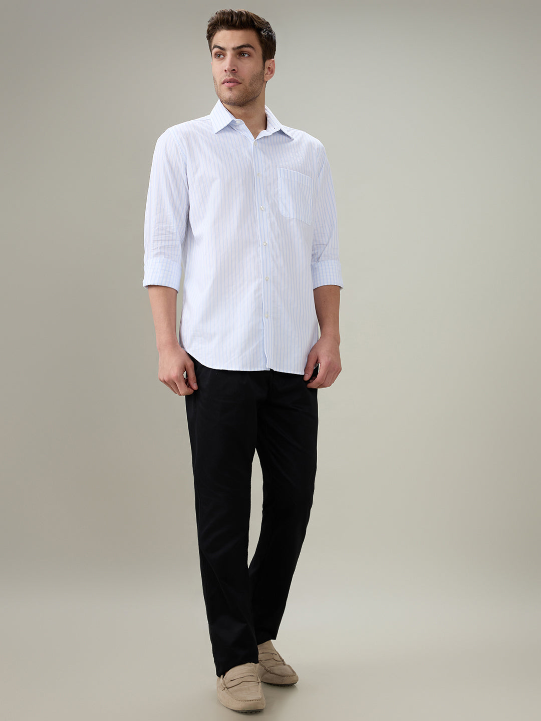 Men Blue Stripe Regular Fit Cotton Full Sleeve Formal Shirt