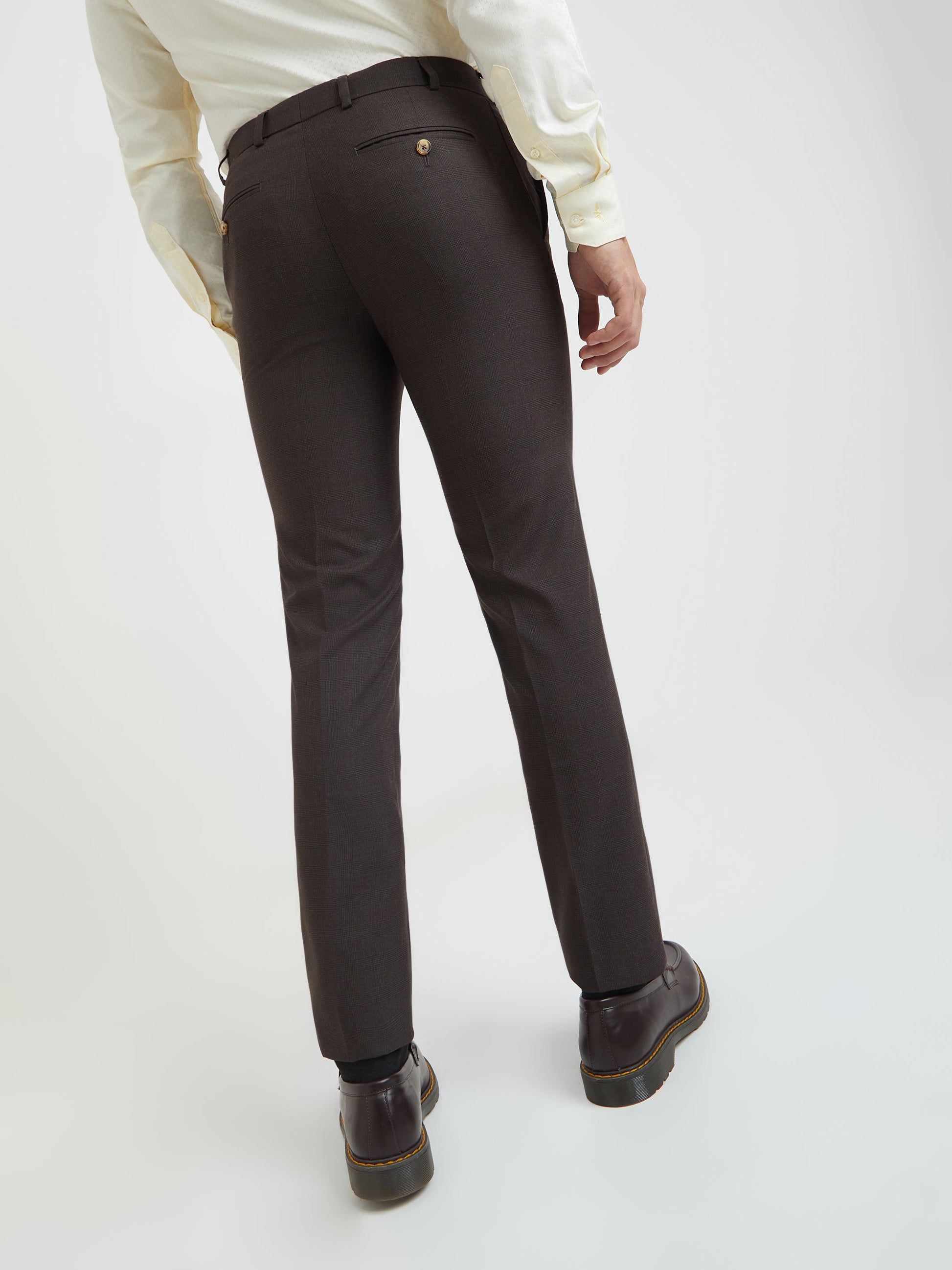 Men Brown Checks Slim Fit Polyester Blend Trouser
