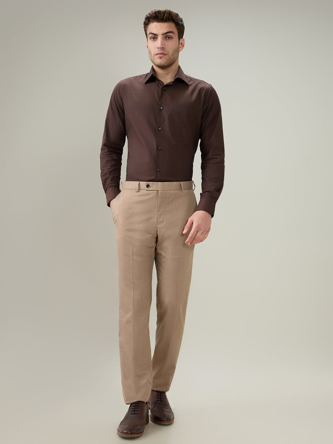Raymond Men Brown Solid Chambray Slim Fit Cotton Full Sleeve Formal Shirt