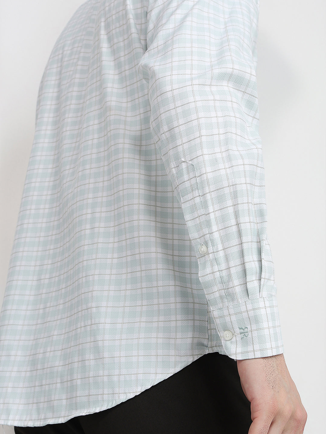Men Green Checks Slim Fit Bamboo Blend Full Sleeve Shirt