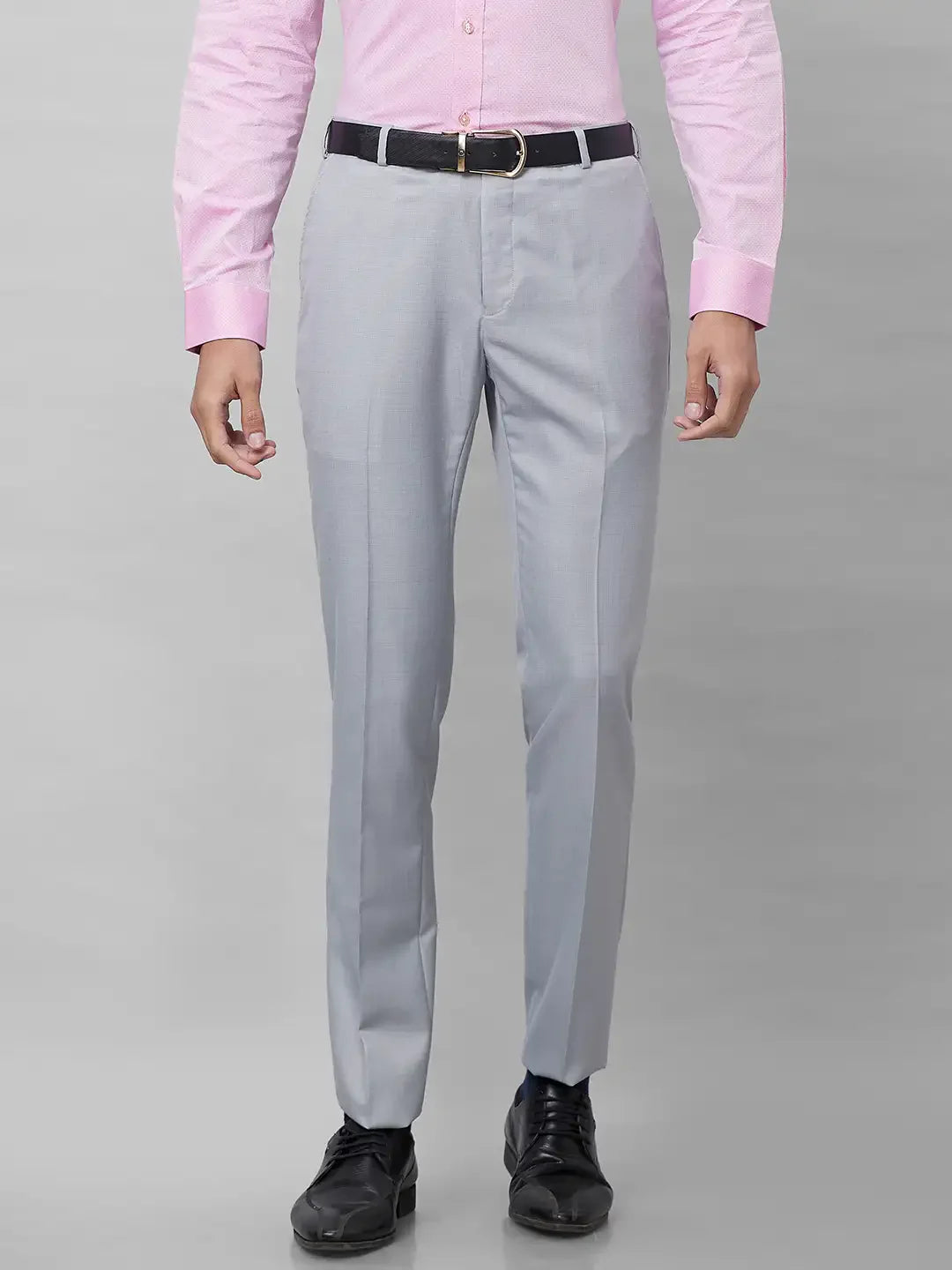 Raymond Men Grey Solid Slim Fit Polyester Blend Trouser