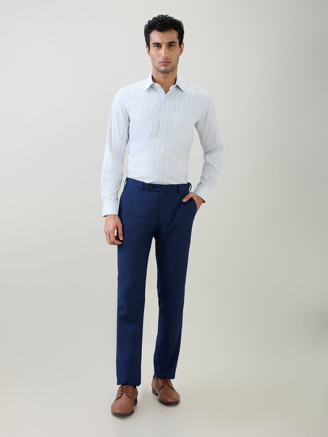 Raymond Men Grey Stripe Contemporary Fit Bamboo Blend Full Sleeve Formal Shirt