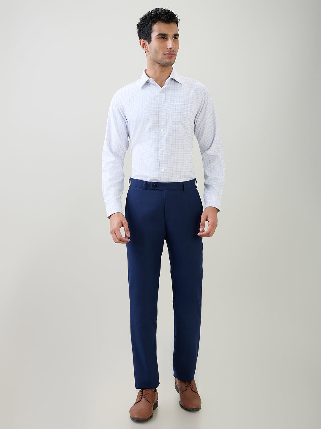 Raymond Men Purple Checks Slim Fit Bamboo Blend Full Sleeve Formal Shirt