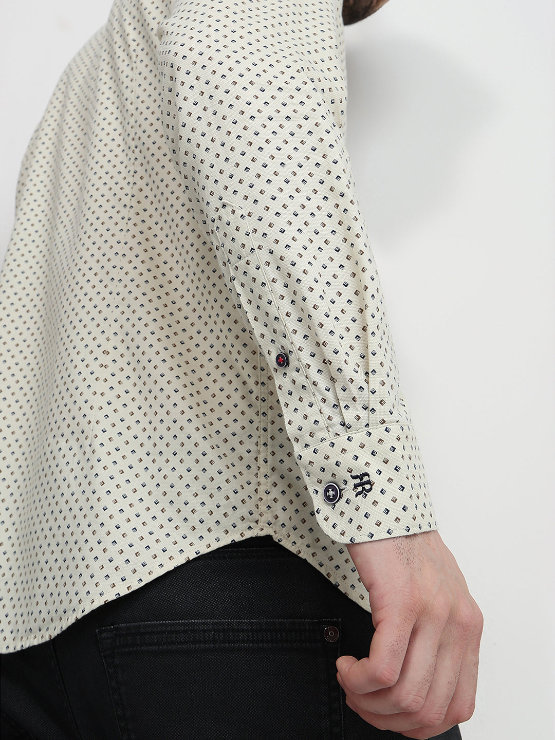 Men Yellow Printed Regular Fit Cotton Full Sleeve Regular Collar Shirt