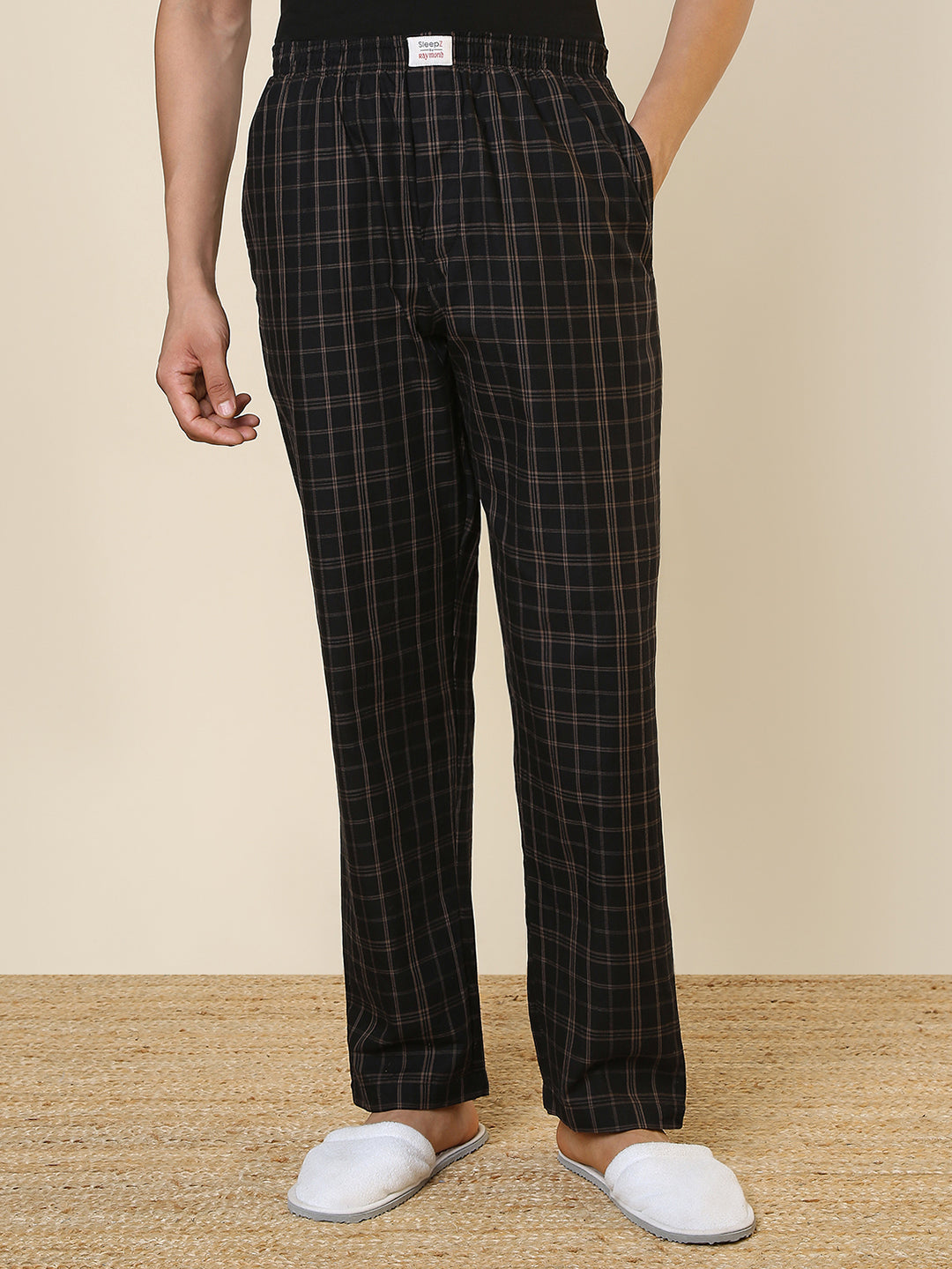 Sleepz Men Black Checks Regular Fit Cotton Pyjama
