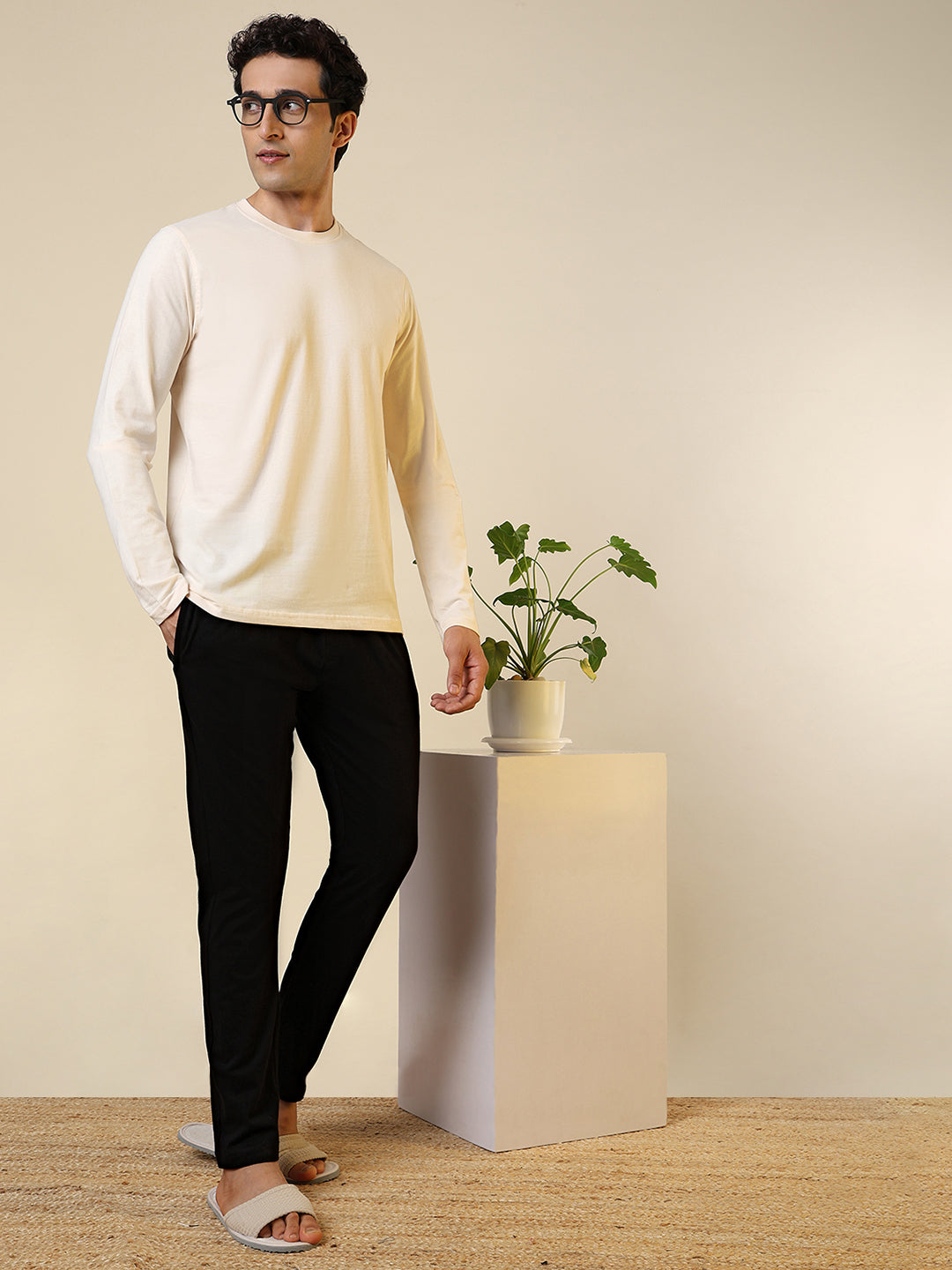 Sleepz Men Black Solid Regular Fit Cotton Trackpant