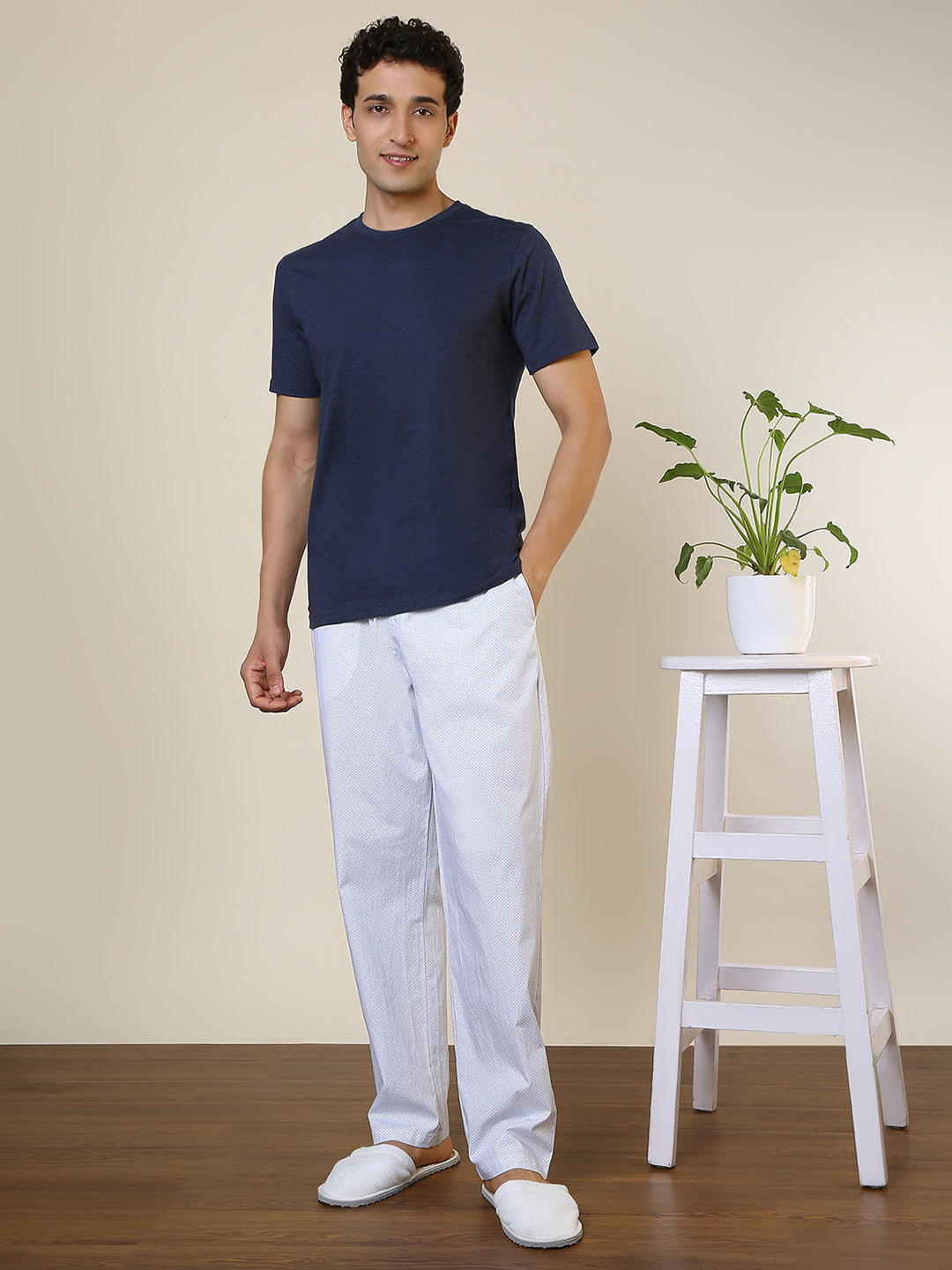 Sleepz Men Blue Printed Regular Fit Cotton Pyjama