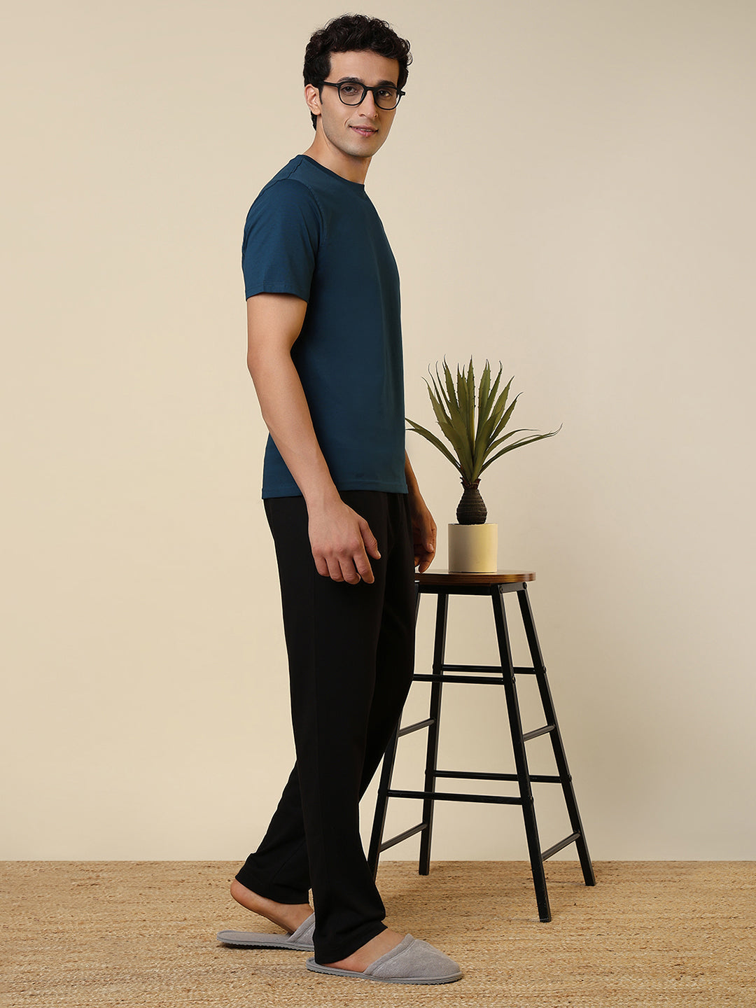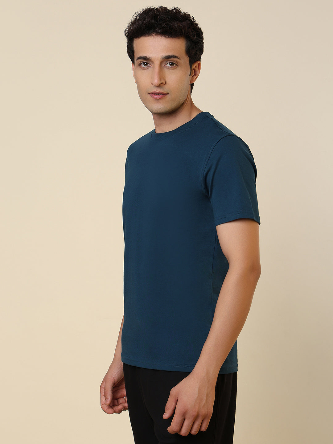 Sleepz Men Blue Solid Regular Fit Cotton T-Shirt