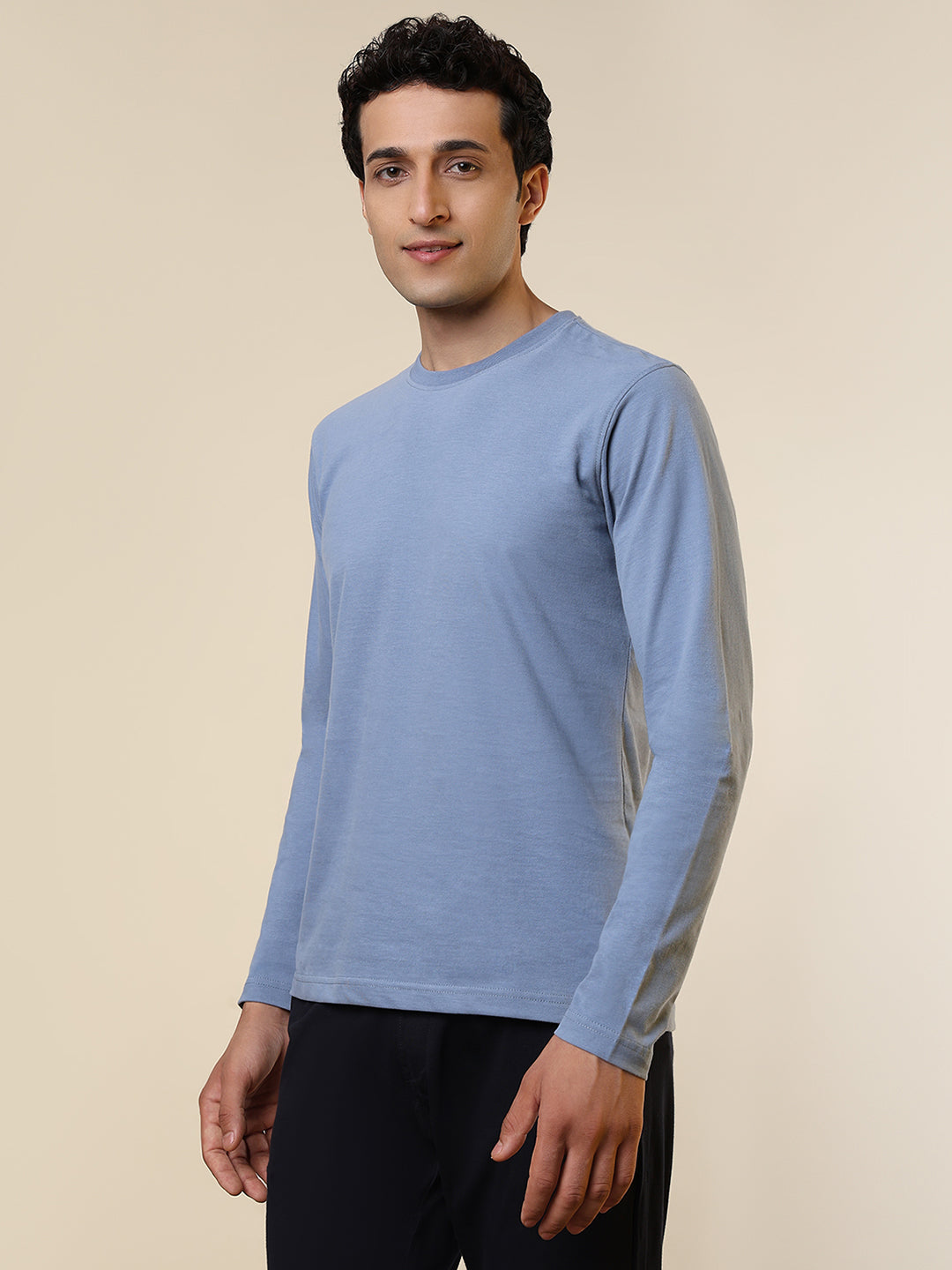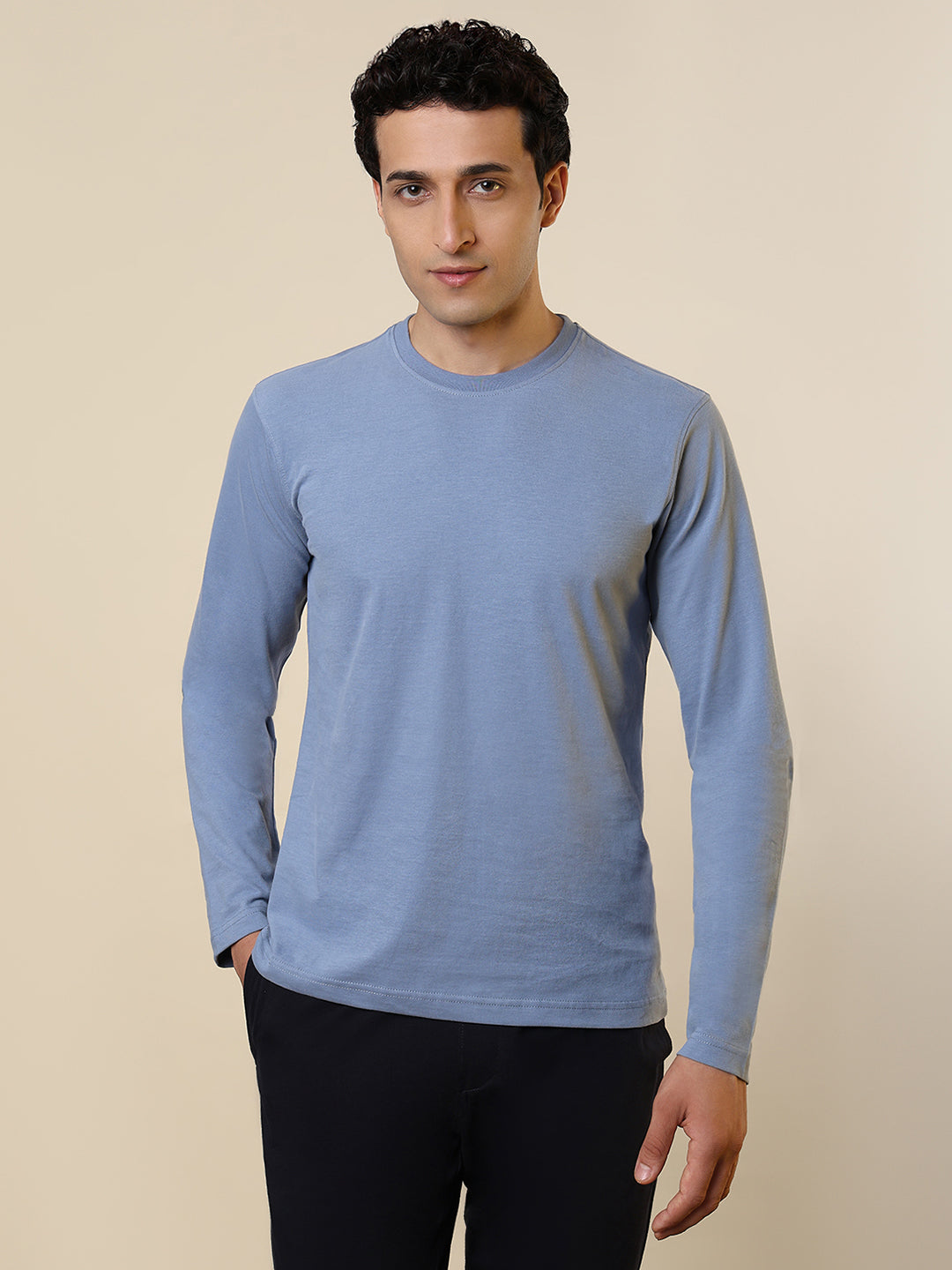 Men Blue Solid Regular Fit Cotton T-Shirt