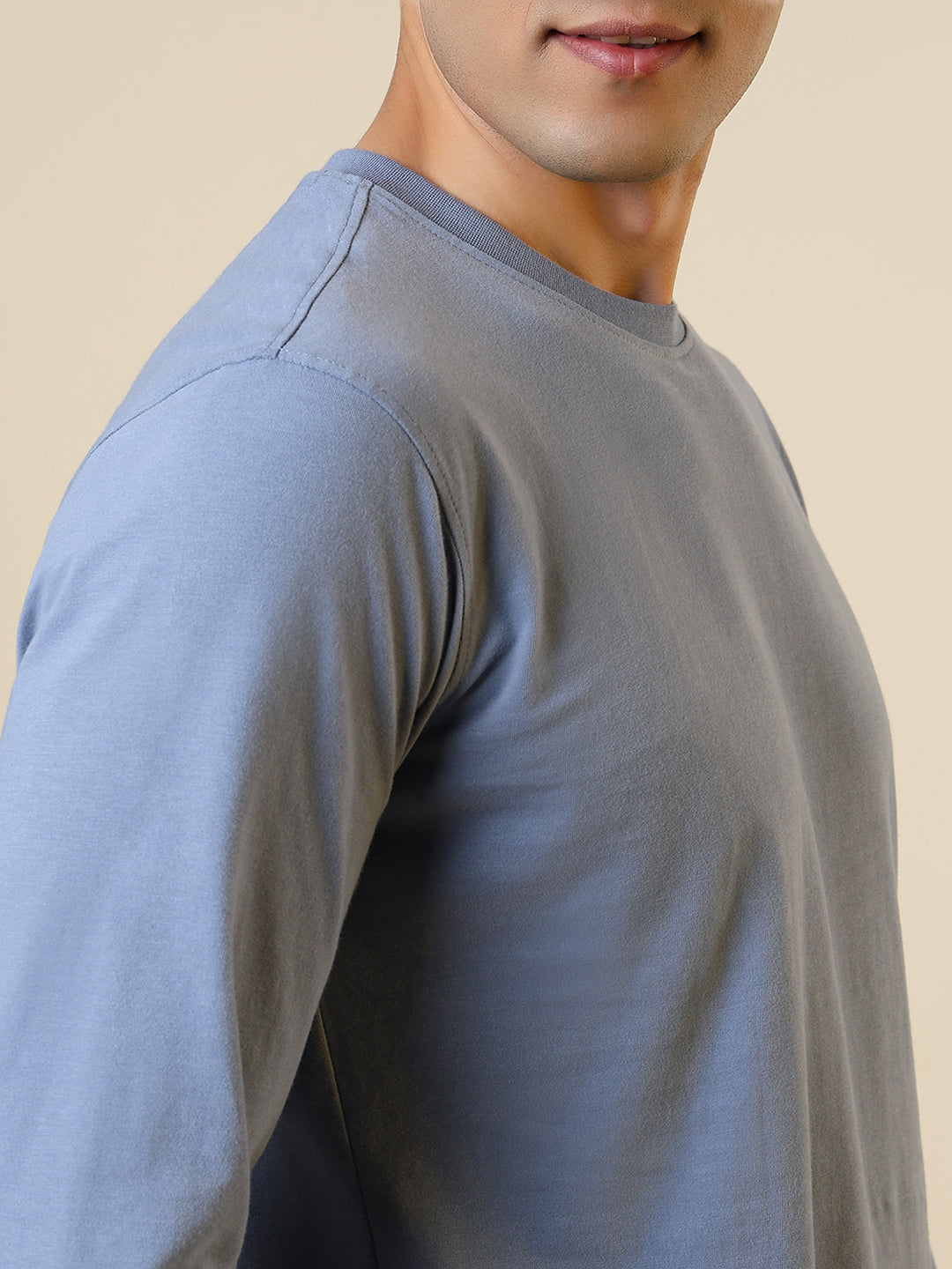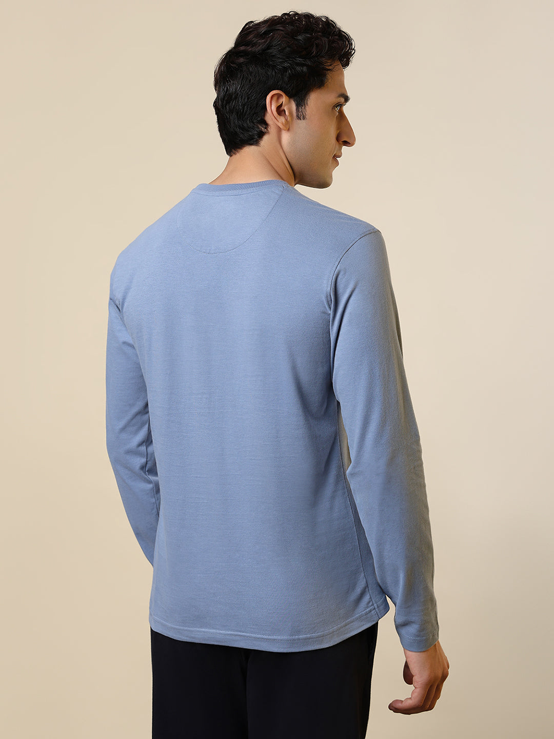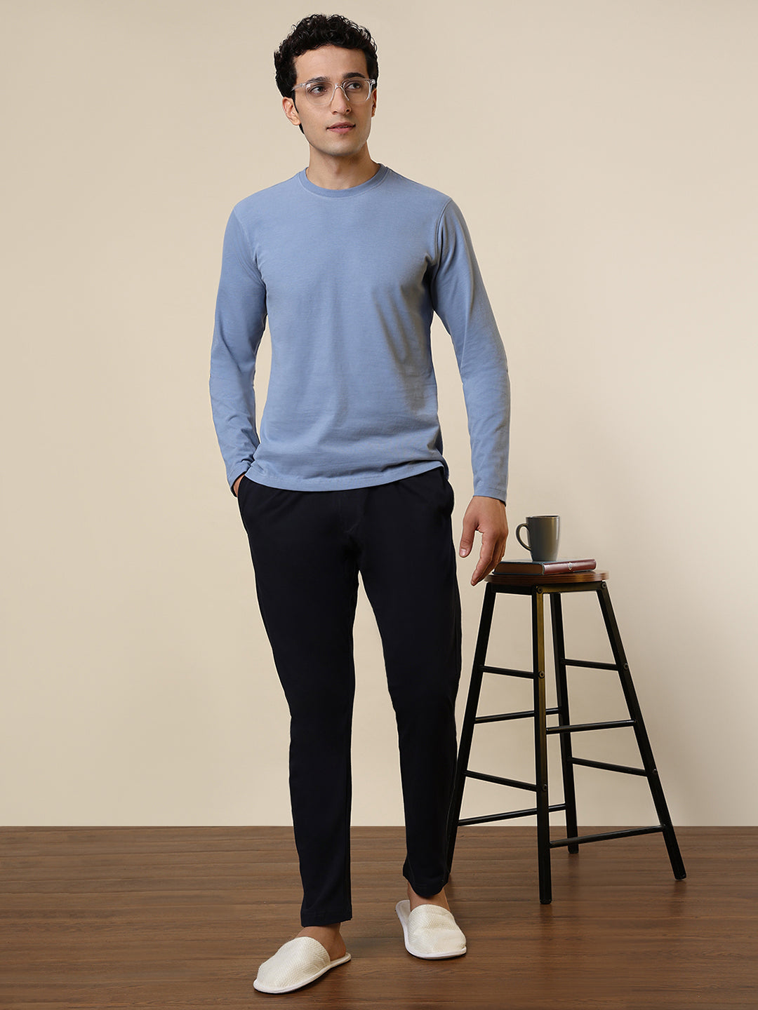 Sleepz Men Blue Solid Regular Fit Cotton T-Shirt