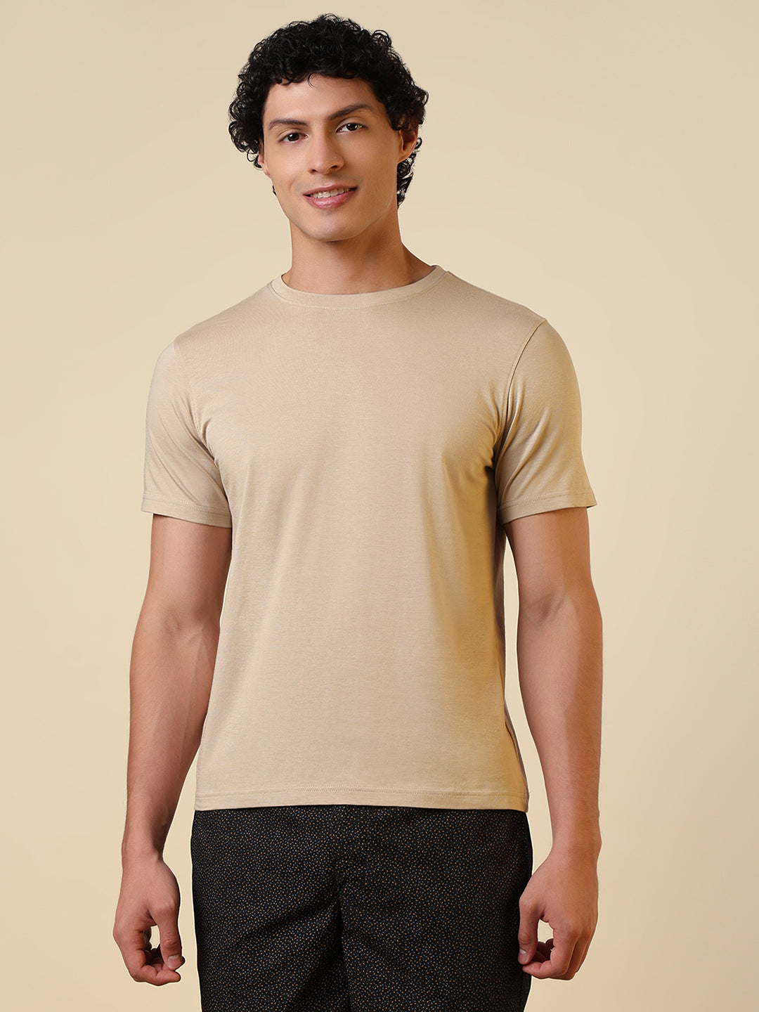 Men Brown Solid Regular Fit Cotton Blend T-Shirt