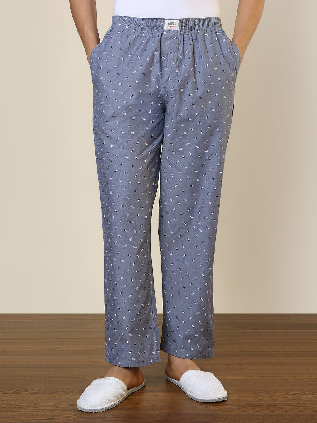 Sleepz Men Grey Printed Regular Fit Cotton Pyjama