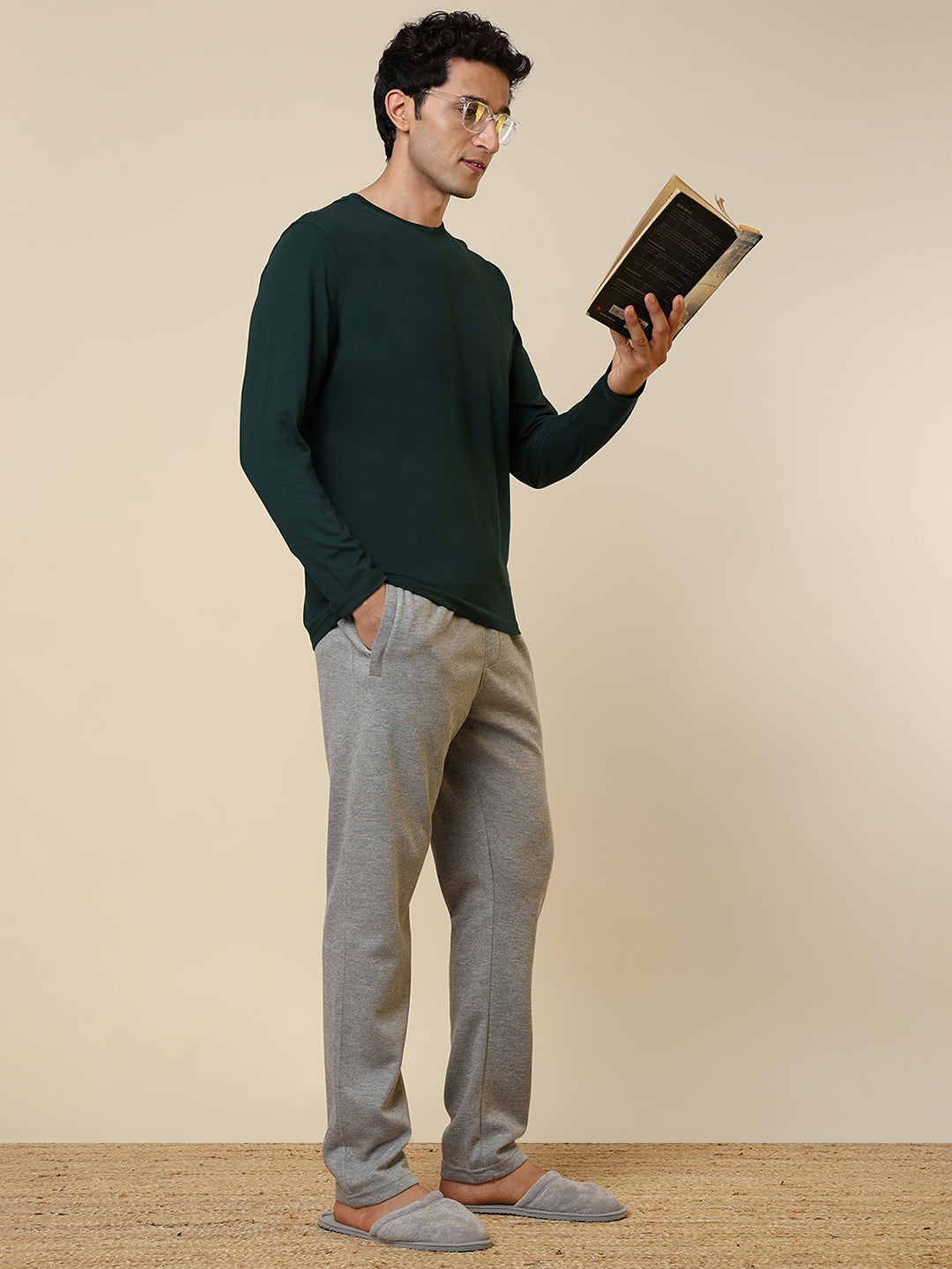 Sleepz Men Grey Solid Regular Fit Cotton Blend Trackpant