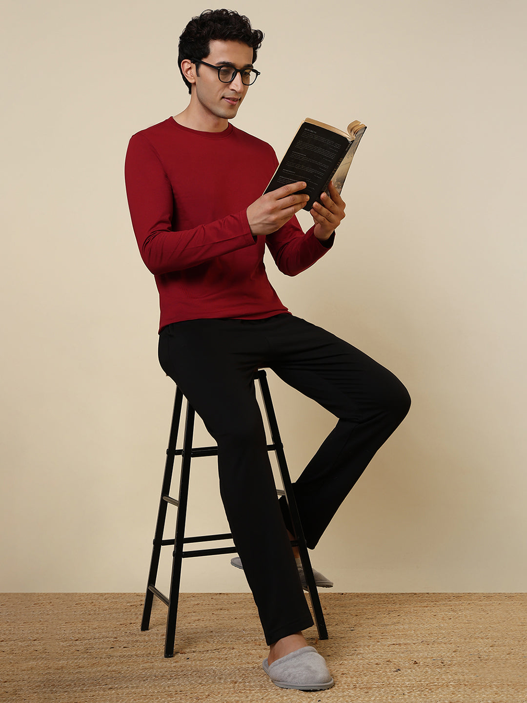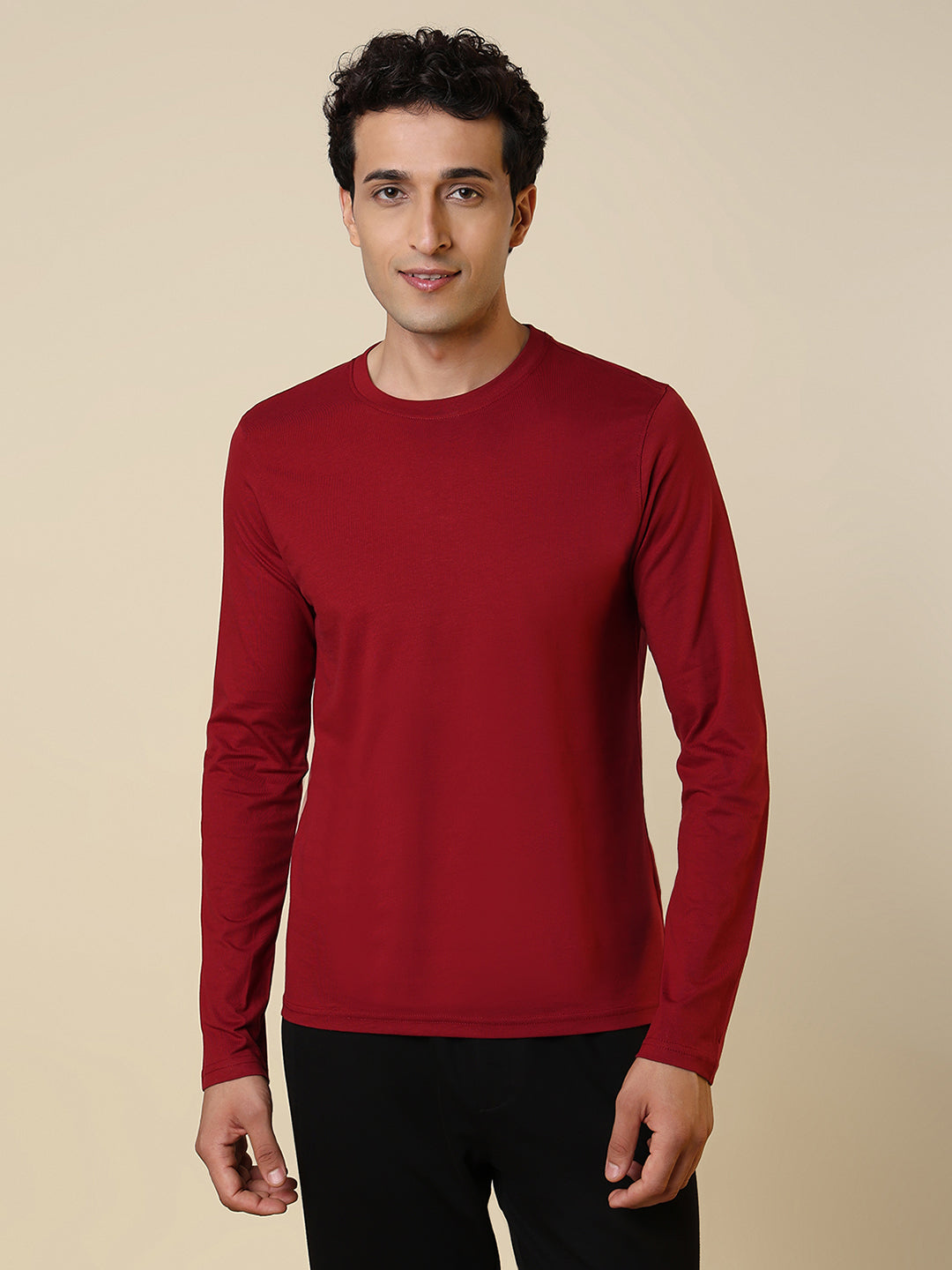 Sleepz Men Red Solid Regular Fit Cotton T-Shirt